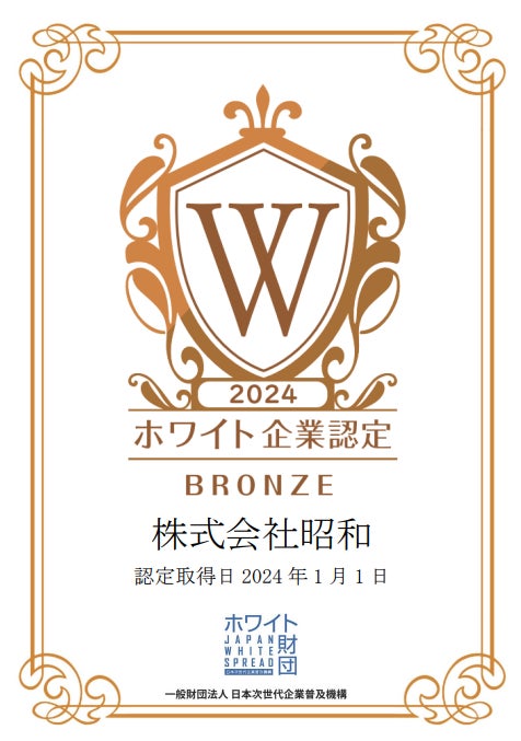 株式会社昭和様が、一般財団法人日本次世代企業普及機構(通称:ホワイト財団)が運営する「ホワイト企業認定 ブロンズランク」を取得しましたことをお知らせいたします。