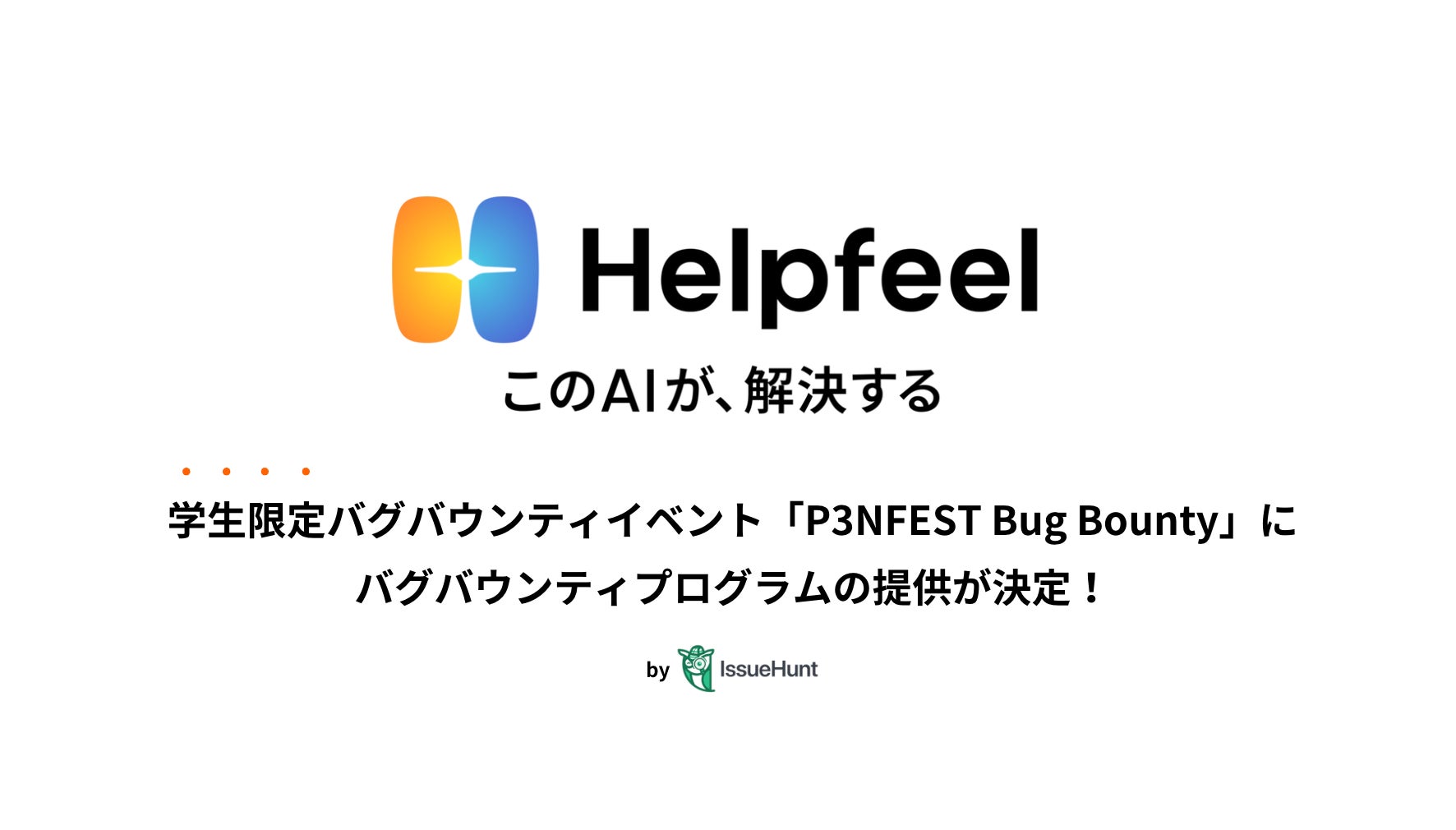 IssueHunt株式会社主催、学生向けバグバウンティイベント「P3NFEST Bug Bounty 」、参加企業であるHelpfeelが提供するバグバウンティプログラムが決定