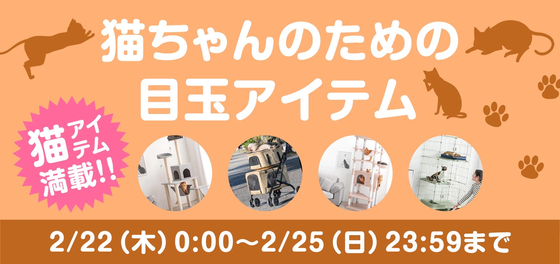 タンスのゲンで取り扱っているキャットケージやキャットタワー、ペットカートなど、ネコちゃんが使うアイテムを対象にした“ネコちゃんのための目玉アイテムセール”を開催いたします。こちらのセールはイベント同様に2月22日(木)から25日(日)の期間で実施され、通常よりもお得な価格で猫アイテムをお買い求めいただくことができます。