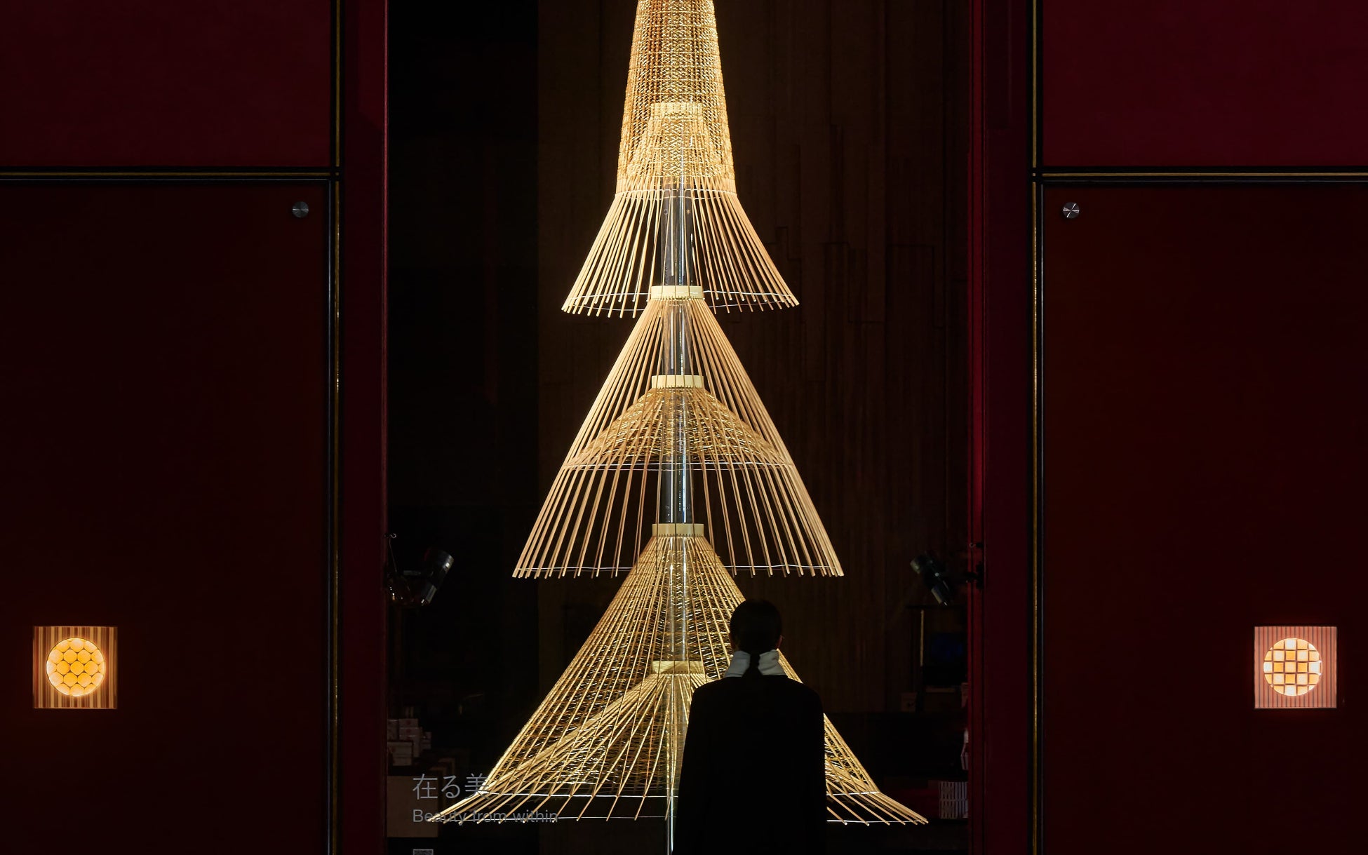 “The ‘Beauty from within’ Brand Store blends traditional Japanese craftsmanship, inspired by the WAGASA umbrella, with contemporary design. It reveals the intricate bamboo ribs and decorative threads, symbolising the inner beauty of both the craft and the individual. This sophisticated, kinetic installation showcases the collaboration between artisans and designers, pushing the boundaries of retail art with precise geometric forms and advanced handmade techniques, creating an extraordinary and unique experience.”