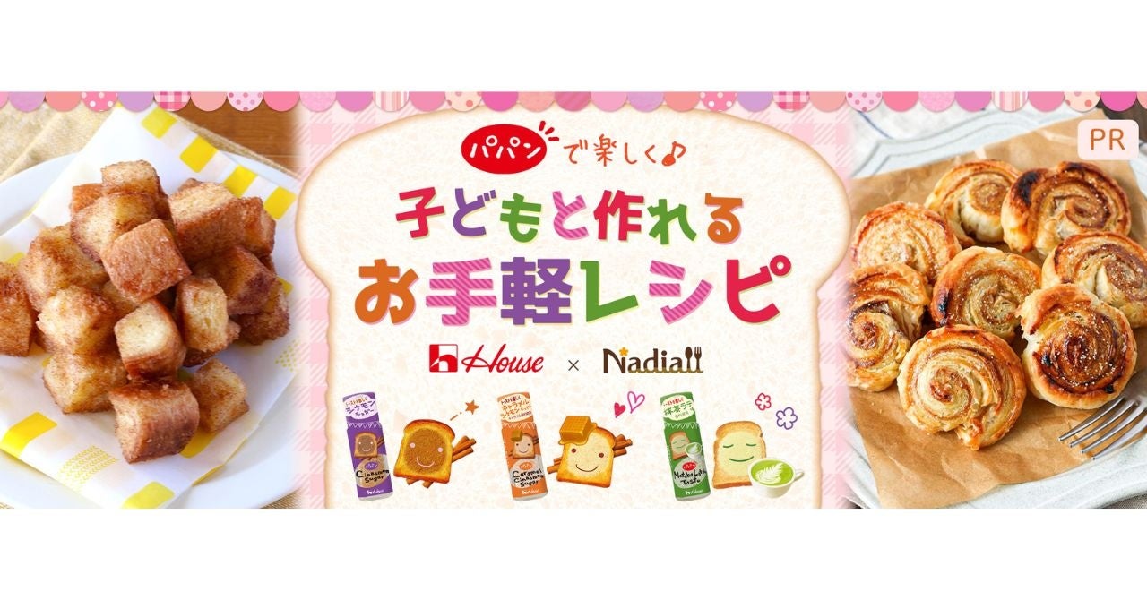 Nadia株式会社(東京都港区/代表取締役社長 葛城嘉紀 以下「Nadia」)とハウス食品株式会社(東京都千代田区/代表取締役社長 川崎 浩太郎 以下「ハウス食品株式会社」)がタイアップし、トーストシーズニング「パパン」シリーズ特別企画ページ「パパンで楽しく!子どもと作れるお手軽レシピ」を公開いたします。