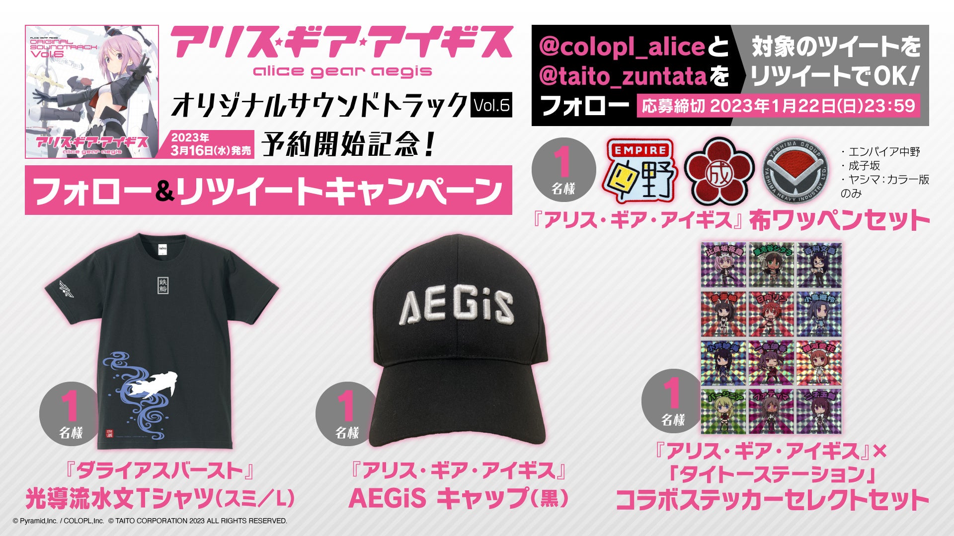 株式会社タイトー(本社:東京都新宿区)は、スマートフォン向け武装カスタマイズアクションゲーム『アリス・ギア・アイギス』(株式会社コロプラ/開発:株式会社ピラミッド)のサウンドトラックCD第6弾『アリス・ギア・アイギス オリジナルサウンドトラック Vol.6』を、タイトーのCDレーベル「ZUNTATA RECORDS」より2023年3月16日(木)に発売します。本日1月6日(金)からAmazon.co.jpとKADOKAWAのECサイト『エビテン』にて予約受付を開始しました。
