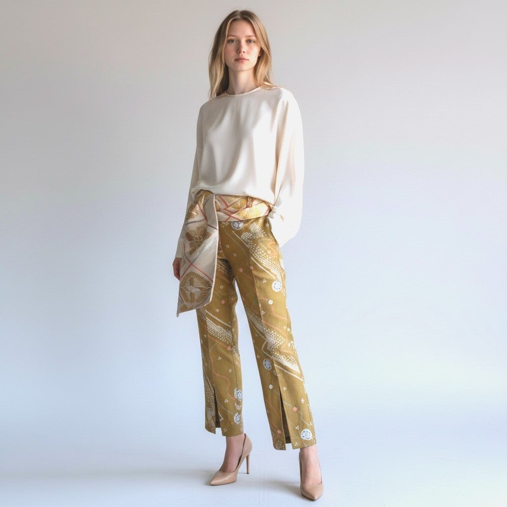 本ブランドは、本来高い価値を持ちながら、時代の変化によって眠っていた着物素材に着目し、その背景や時間、物語を読み解いた上で、トップデザイナーによる再解釈を通じ、現代の美意識にふさわしい服へと再構築しています。