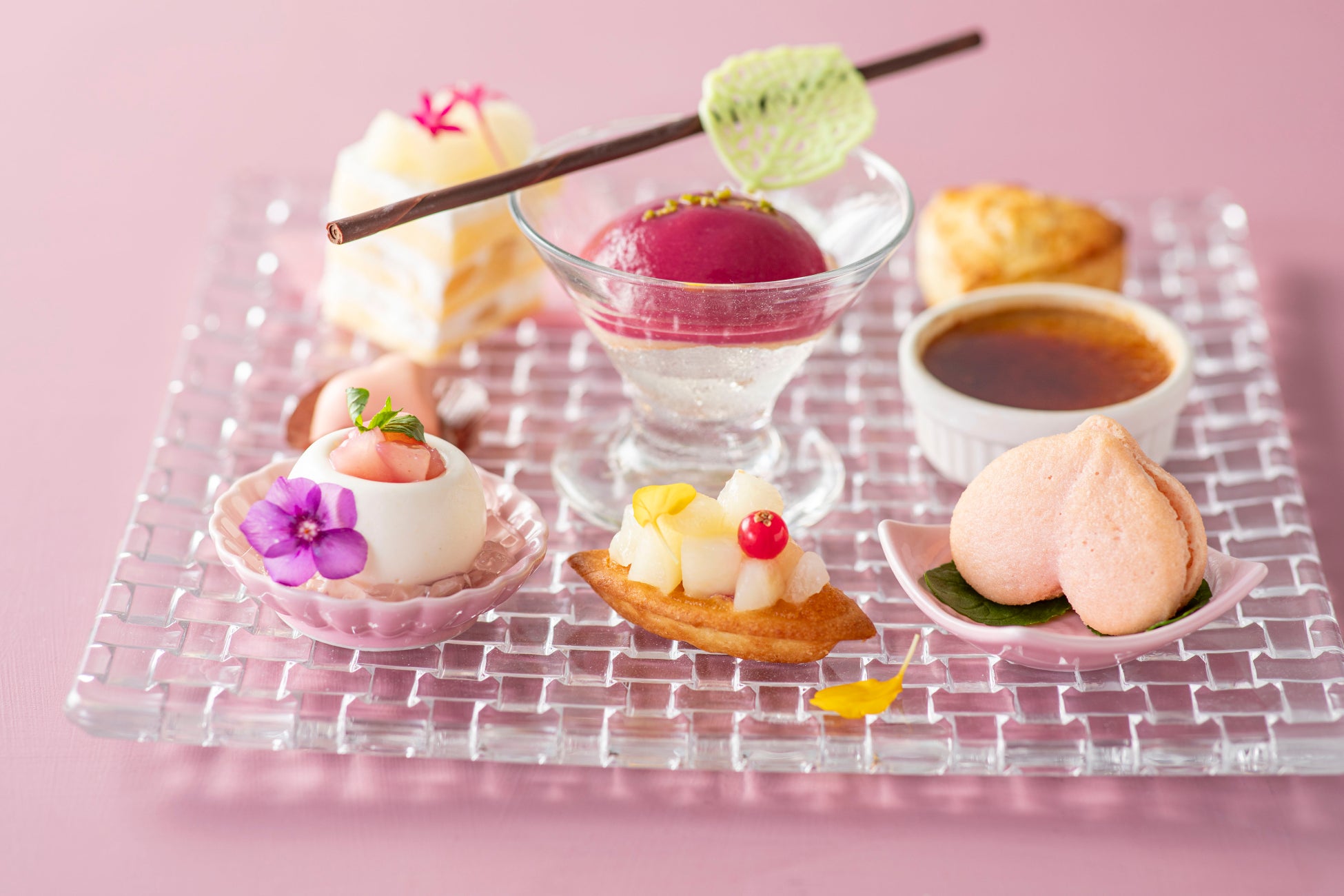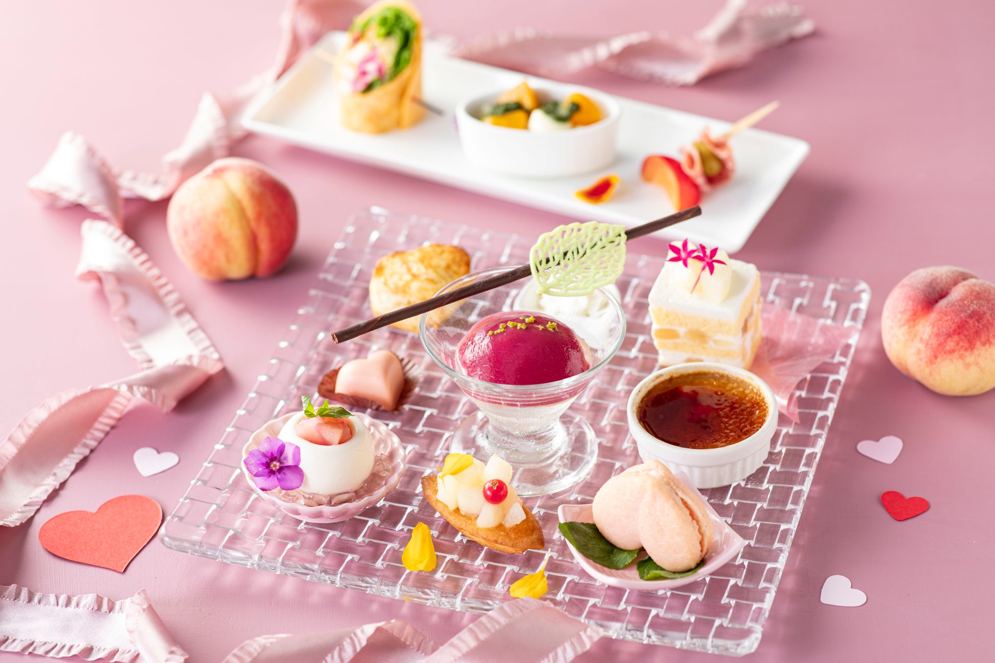 <サザンタワー初登場>スコーンやショートケーキ、ブリュレなどピーチづくしのスイーツ8品とさわやかなセイボリー3品! みずみずしく”桃”色かわいい「ピーチアフタヌーンティー」
