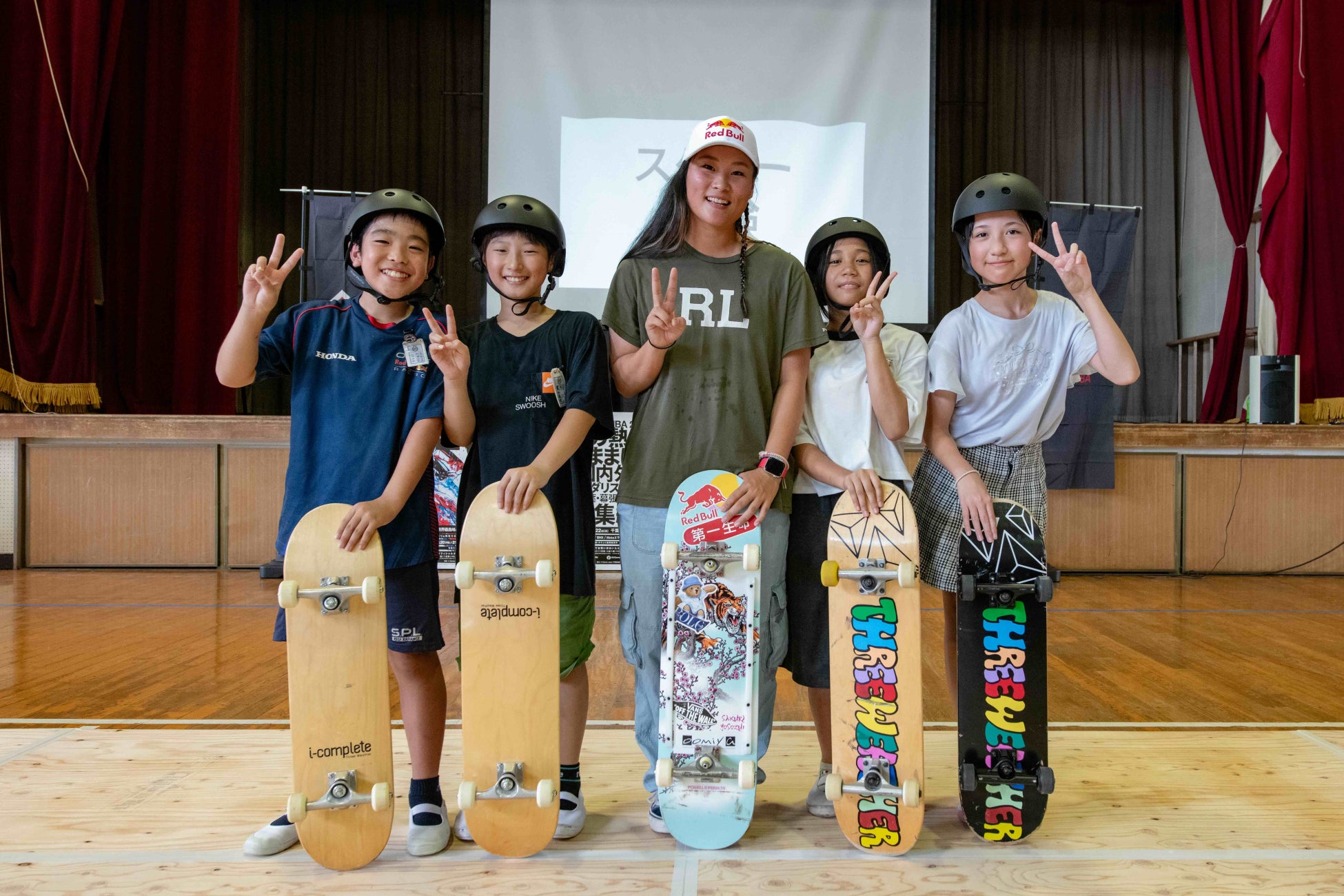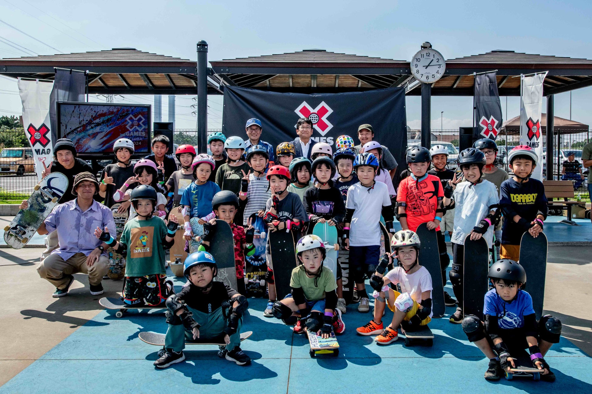 また、大会前々日18日(水)には、世界で活躍する女子スケートボード パーク競技の四十住さくら選手が「X Games Japan組織委員会」と「千葉市」の企画によって、千葉市立都小学校を訪問。質問コーナーや、児童たちと一緒にスケートボードを体験する場が設けられ、子どもたちにとって貴重な時間となりました。