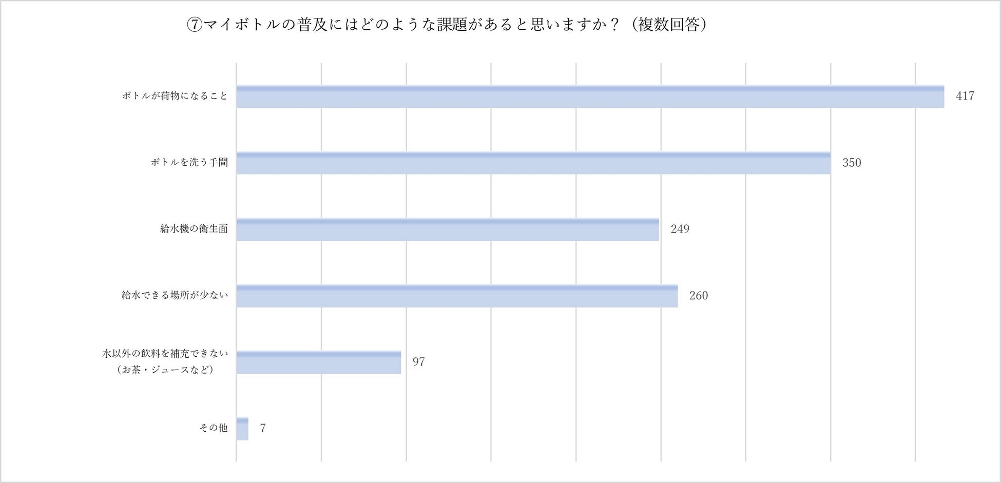 駅(475件)やコンビニ(319件)、職場(302件)、学校(268件)などに給水スポットがあればマイボトルの利用が増えるといったご意見が寄せられました。