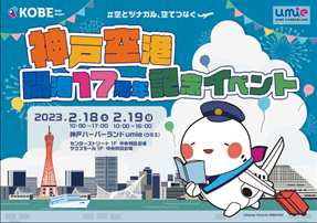 関西エアポート神戸株式会社は、2023年2月16日に神戸空港が開港17周年を迎えることを記念し、「神戸空港開港17周年記念イベント」を2月18日(土)・19日(日)に神戸ハーバーランドumie及び神戸空港にて開催することをお知らせします。
