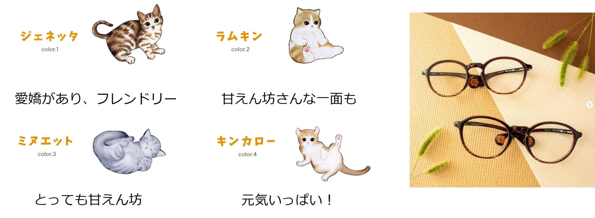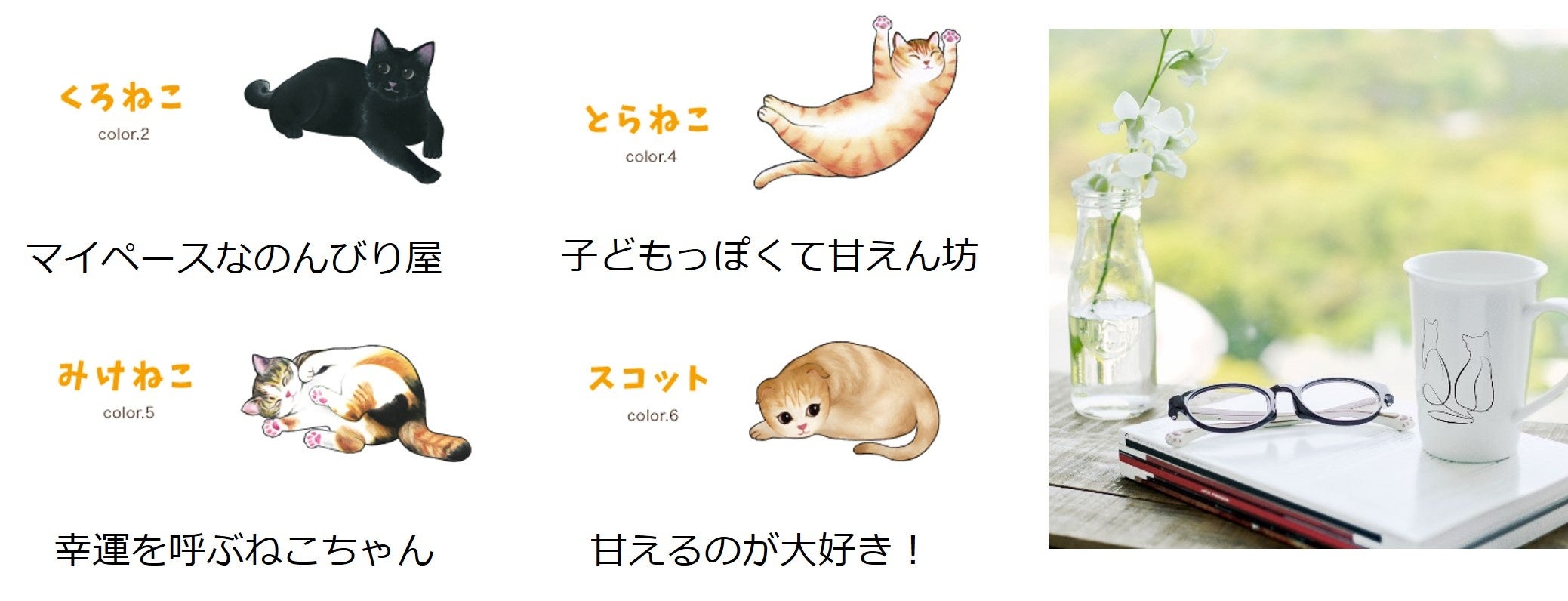 2015年に「うっかり掛けたまま寝落ちしても簡単には壊れないメガネ」として販売を開始した同シリーズは、この度「ねこ好きの、ねこ好きによる、ねこ好きのためのメガネ」としてビジュアルを新たにし、生まれ変わりました。