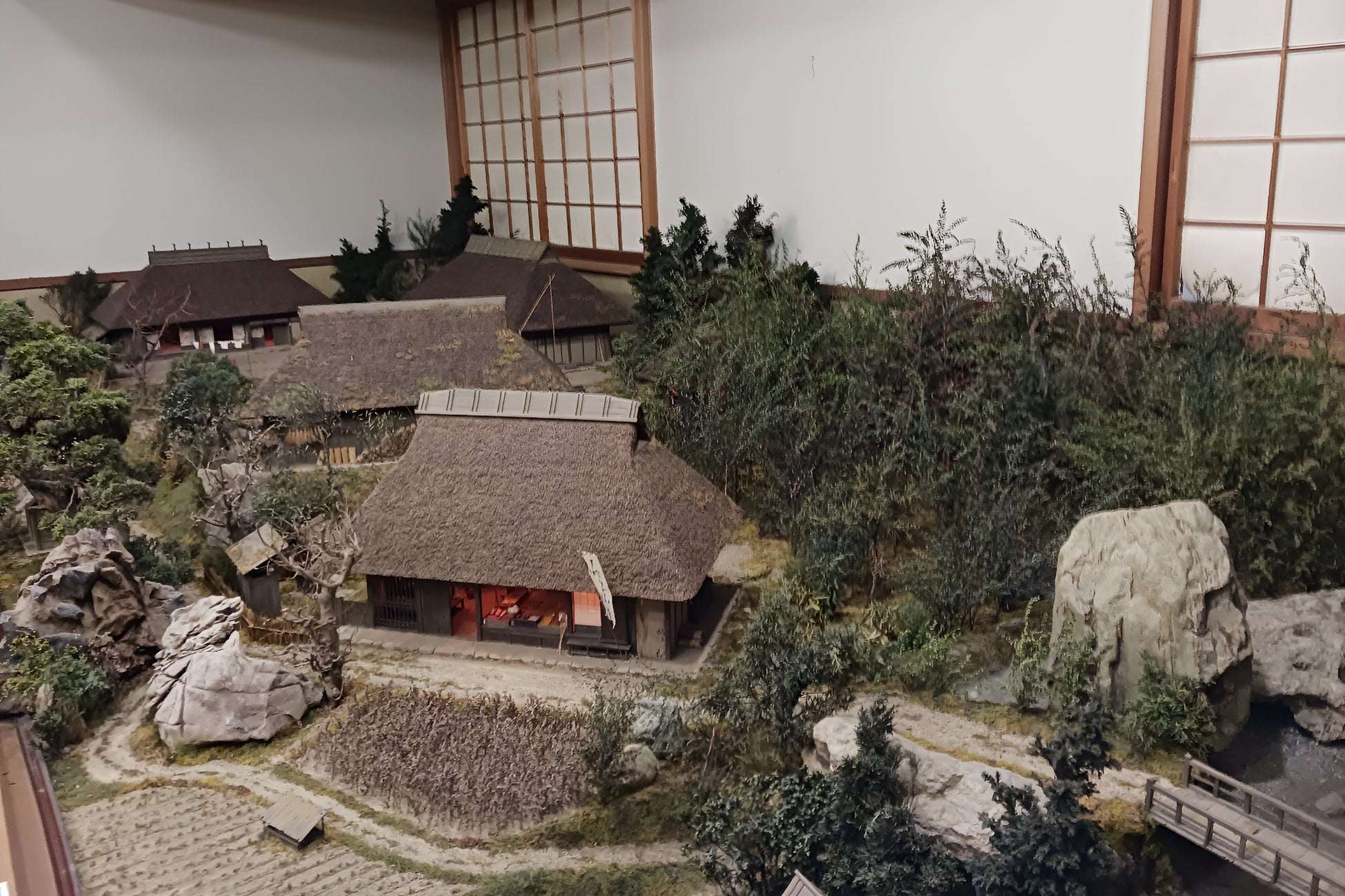 哀愁のふるさと館に足を踏み入れると広がる懐かしい風景。ズラリと並ぶのは、秩父をはじめ、全国に実存した民家のミニチュア模型です。建物だけでなく、庭、建具、調度品からクモの巣まで、長い年月をかけて精巧に再現されています。