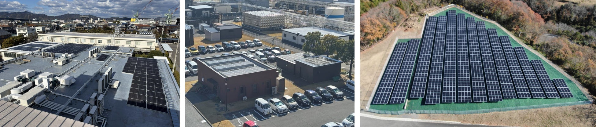 当社は、大塚グループが特定したサステナビリティにおけるマテリアリティ(重要項目)の一つである「地球環境への負荷低減」の施策のうち、「カーボンニュートラル」においてはCO2排出量削減の目標達成に向けて取り組んでいます。2021年以降、国内工場における太陽光発電設備の導入を進め、現在、徳島板野工場*2、高崎工場*3、徳島工場*4、徳島美馬工場*5、徳島第二工場*6、徳島ワジキ工場*7の計6工場で稼働しています。また、国内全8工場*8へのCO2フリー電力の導入、工場敷地外の全オフィス部門での「グリーン電力証書*9」の活用などに加え、航空貨物輸送時におけるSAF*10活用促進など、サプライチェーン全体でのCO2排出量のさらなる削減を推進しています。