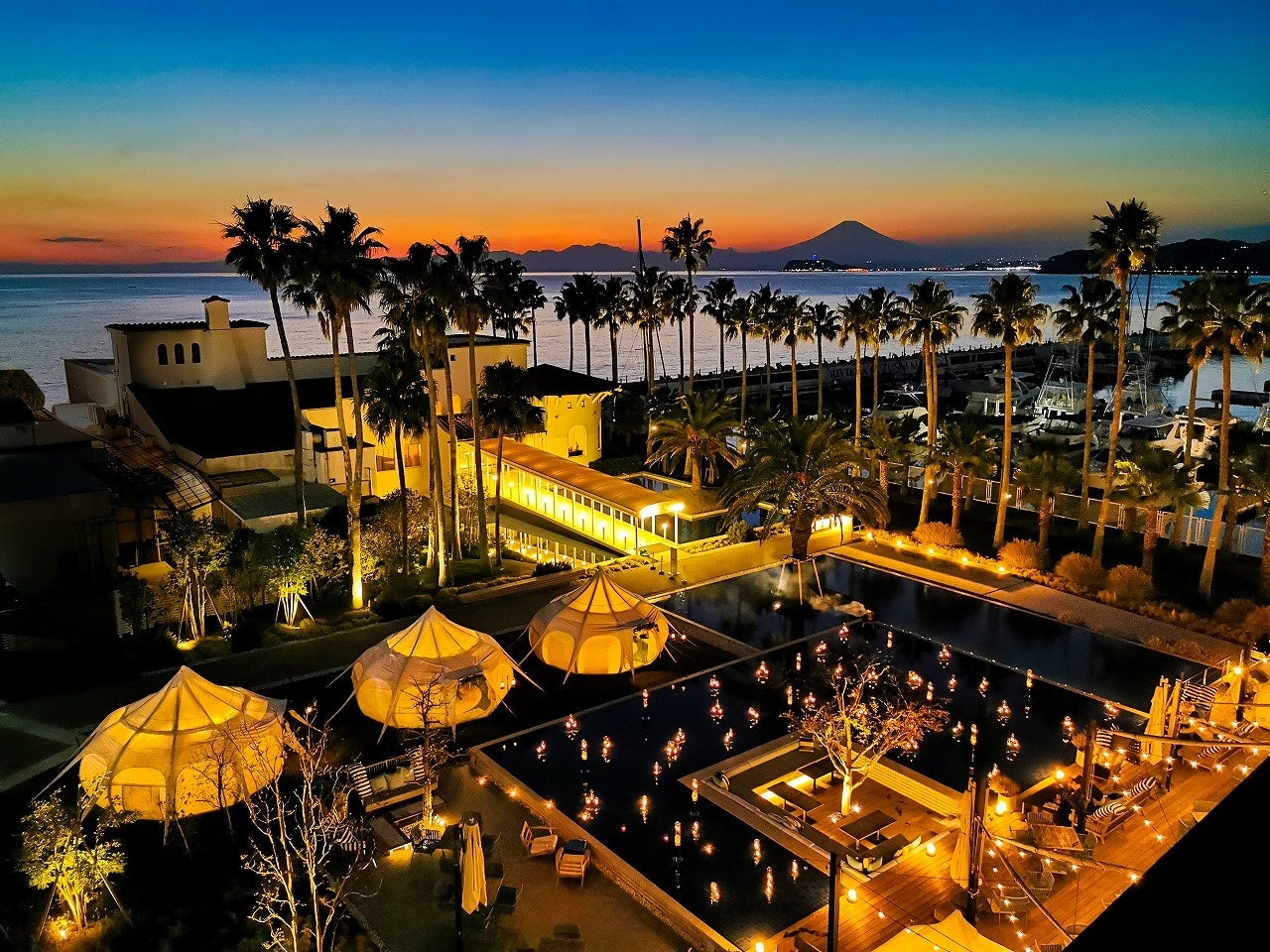 日本有数のマリーナとして1971年に誕生、2001年リビエラグループが取得し「大人のマリーナリゾート」として神奈川県逗子市で展開しています。都心から約60分の近距離にあり、約900本のヤシ並木と高級なクルーザー・ヨットが停泊するマリーナが海外リゾートを彷彿させる非日常のロケーションを備えた『リビエラ逗子マリーナ』は、湘南の海の向こうに富士山を望み、映画等のロケ地としても有名です。5万坪の敷地には、ヨットハーバー、ホテル、レストラン(2店舗)、イベント会場、バンケット、リゾートマンション(9棟1,266戸)、テニスコート(4面)、ショップ等の施設を有しています。2020年には全11室のスモールラグジュアリーホテル『マリブホテル』と、日本初上陸のレストラン『マリブファーム』がオープン。さらに2022年、日本初上陸の近未来デザインのトレーラーホテル&オーシャンサウナ『SPACE KEY POINT』がオープンし、マリーナリゾートとして進化し続けています。