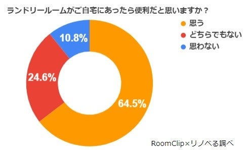 注目のランドリールームですが、自宅に造るとしたらどのような課題があるでしょうか?まず、「ランドリールームがご自宅にあったら便利だと思いますか?」という設問に対しては、64.5%が「ランドリールームがあったら便利」と回答しました。やはり、1か所に洗濯動線が集約するのは時短にもつながり魅力的に感じる方も多いようです。