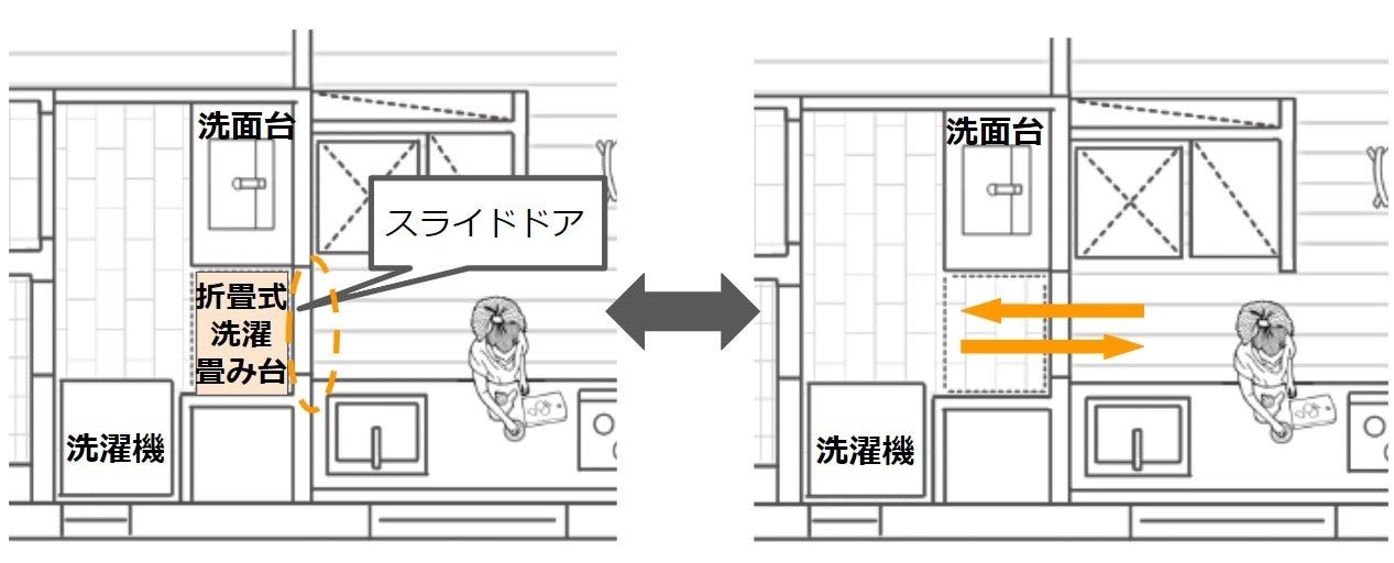 洗面スペース拡大図(洗濯畳台あり⇔洗濯畳台なし):