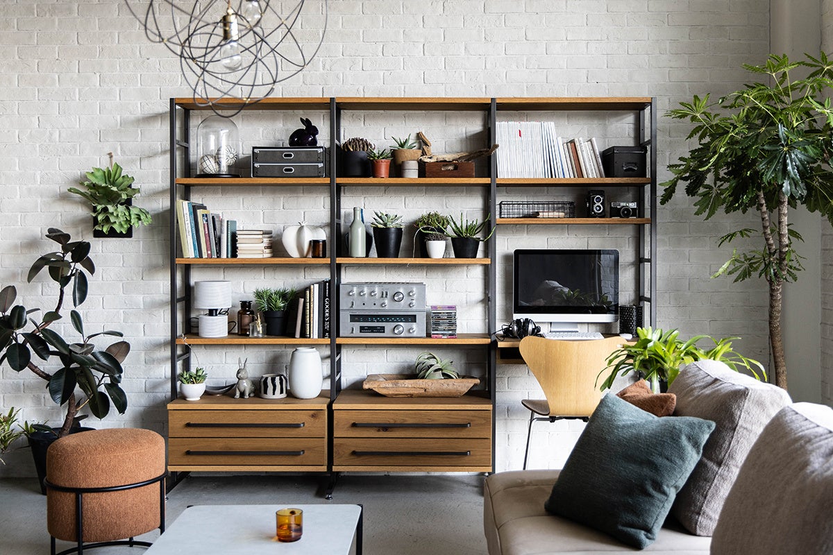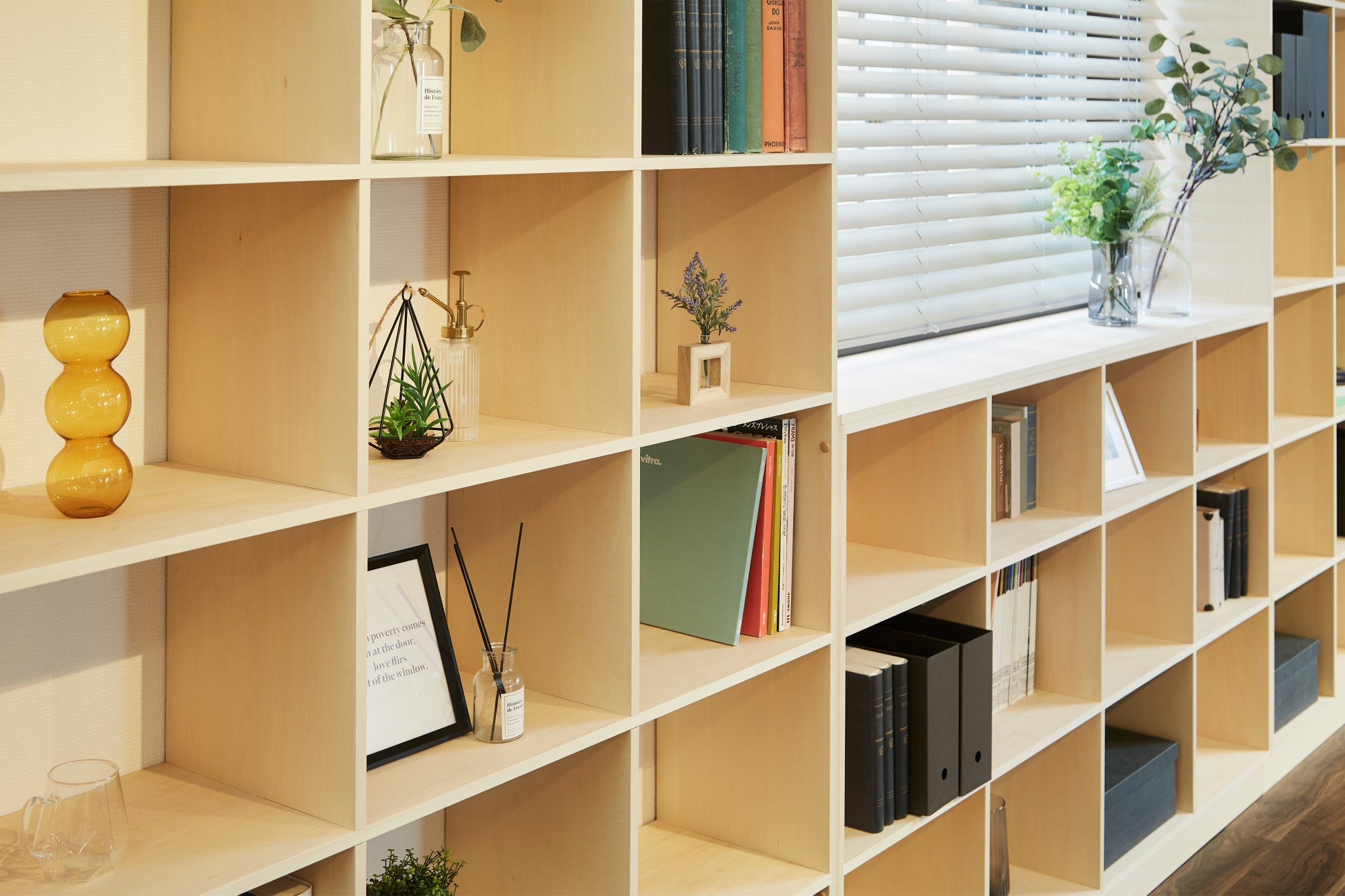 シンプルな構造なので組み立ては簡単。オフィスやリビングの壁一面を、瞬く間に存在感のある収納棚に変えることができます。扉付きなどのオプションも取り揃えた、フレキシブルに空間を彩る壁面収納シェルフです。