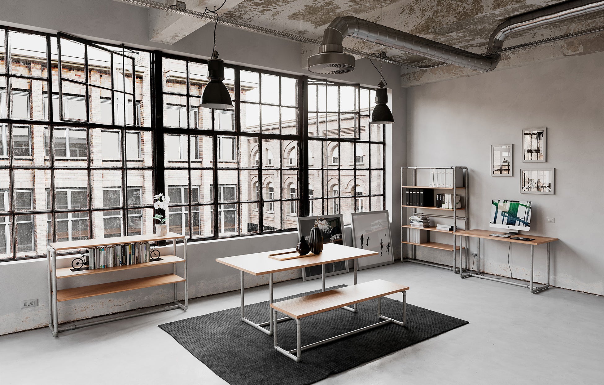 水道管としても使用されている、耐久性の高いステンレス鋼パイプを使用した家具ブランドです。