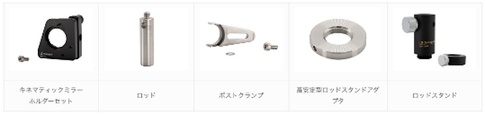 光学系の構築にはミラーホルダーやロッド、ロッドスタンドなどが数多く必要ですが、個々の部材を都度、購入するのは手間がかかるものでした。そこで、光響ではシグマ光機製品の中でご使用頻度の高い部品を組み合わせ、定価よりも大幅にお安く、お求めやすくしたセットを用意いたしました。本セットを活用頂き、光学実験に必要な部材を取り揃える手間とコストを削減する一助となれば幸いです。