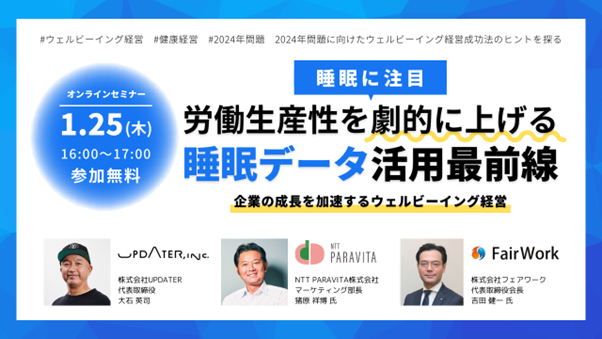 「睡眠に注目!労働生産性を劇的に上げる睡眠データ活用最前線」ウェルビーイングセミナー、1/25に開催