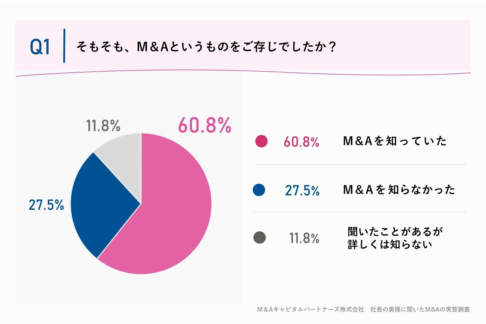 「Q1.そもそもM&Aのことをご存知でしたか。」(n=51)と質問したところ、「はい」が60.8%、「いいえ」が27.5%という回答となりました。