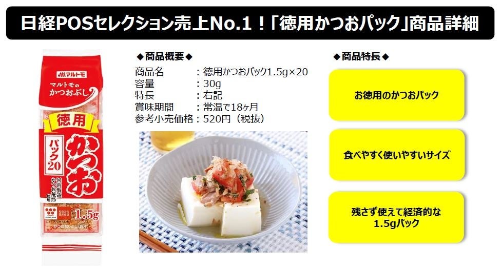 マルトモ「徳用かつおパック1.5g×20」が「日経POSセレクション売上No.1」に選出されました!