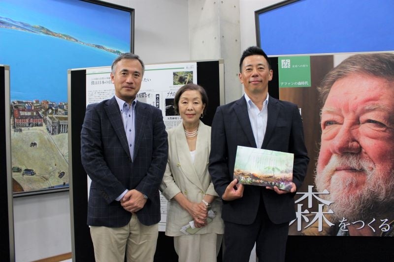 左から、シナネン経営企画部長 井出 正浩、C.W.ニコル・アファンの森財団理事長 森田 いづみ、シナネン環境エネルギー事業本部長 飯田 明博