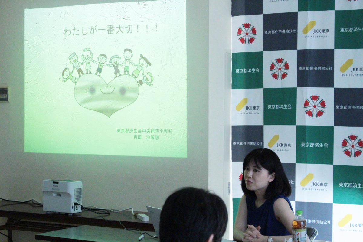 済生会支部東京都済生会中央病院の小児科医により、江東区の「トミンハイム古石場二丁目」で、7月6日(土曜日)に「おやこほけんしつ」と題して小学校高学年から高校生までとその保護者の方を対象とした性教育に関する講演と個別相談会を開催しました。