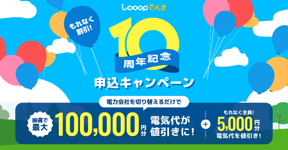 「おまかせ割」に加え、「Looopでんき」サービス開始10周年を記念し、新規でお申し込みいただいた方を対象に、期間限定キャンペーンも実施いたします。