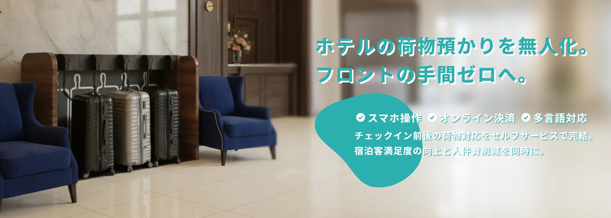 チェックイン前後の荷物預かりを、ゲスト自身の操作で完結できるセルフ型バゲッジストレージシステムです。