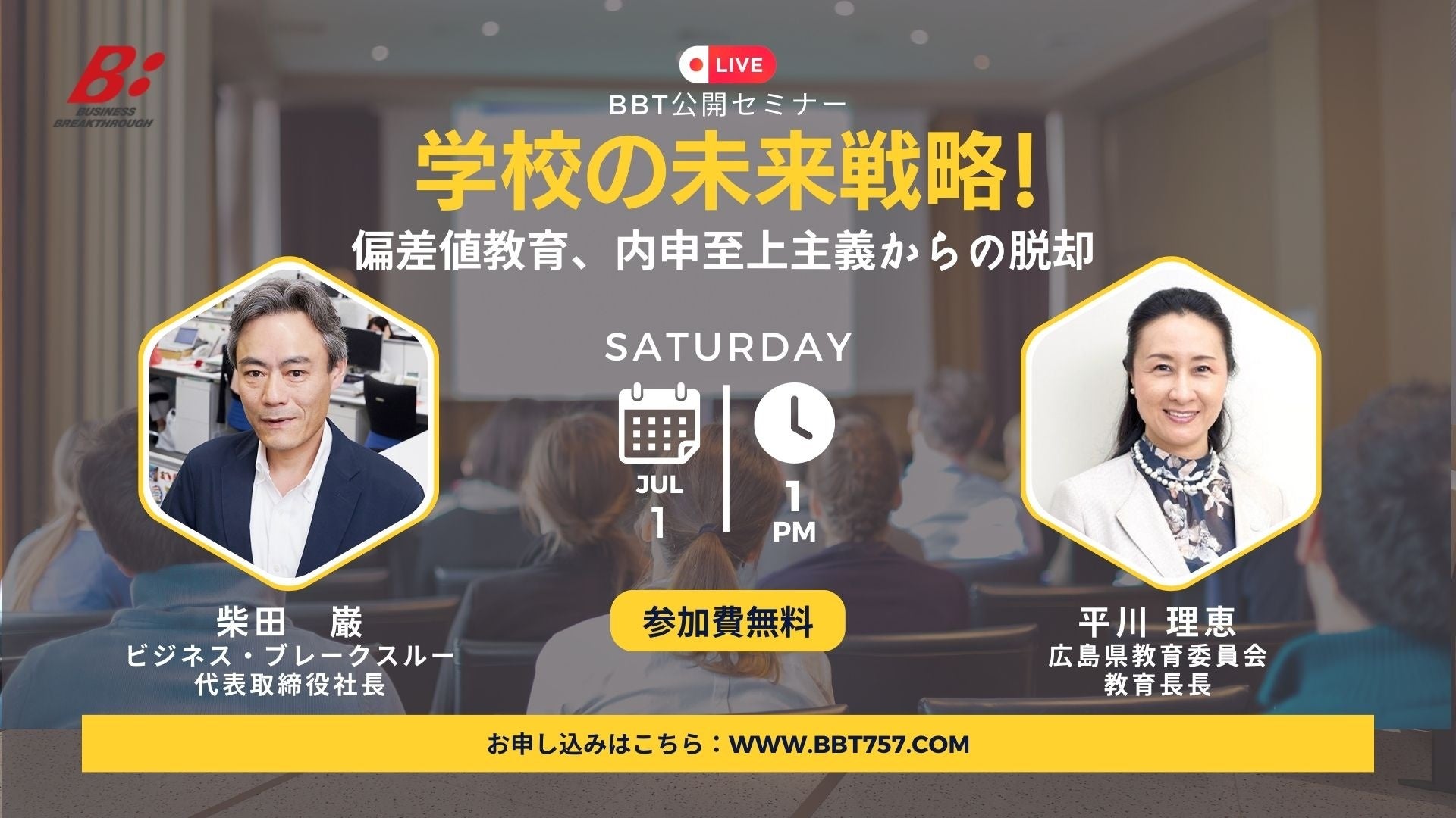 【ビジネス・ブレークスルー、無料公開セミナー開催】学校の未来戦略!「偏差値教育、内申至上主義からの脱却」