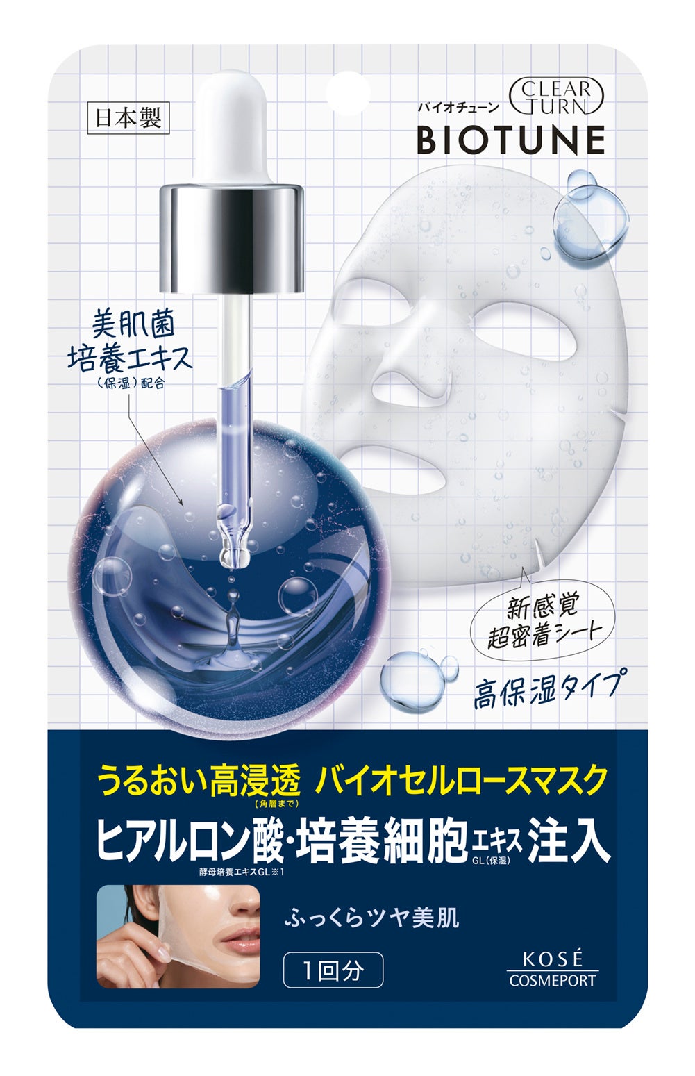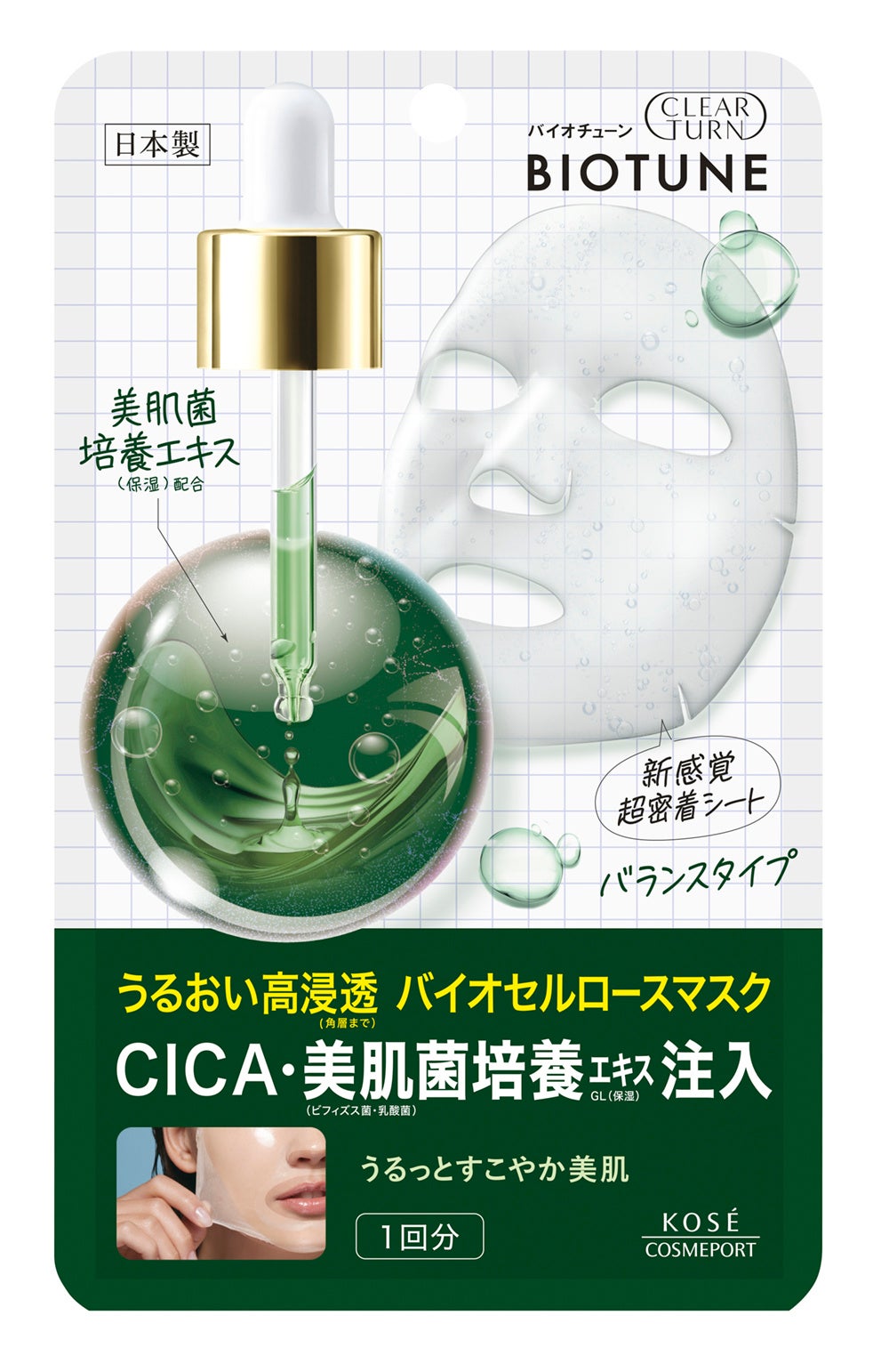 「バイオチューン セルロースマスク」は、うるおったすこやか肌に導くバランスタイプとふっくらツヤ肌に導く高保湿タイプをラインナップし、肌状態に合わせて厳選した「美肌菌培養エキスGL※1」を配合しています。肌あれ・乾燥など肌がゆらぎがちな方にむけたバランスタイプには、W美肌菌(ビフィズス菌・乳酸菌)培養エキス※1・CICAエキス※3・セラミド類似成分※4・GL(保湿)を配合し、すこやかな肌に導きます。ハリ・ツヤ不足が気になる方に向けた高保湿タイプには、W(ヒアルロン酸酵母・植物培養細胞)培養エキス※1・アミノ酸※5・GL(保湿)配合。弾むようなツヤ肌へ導きます。