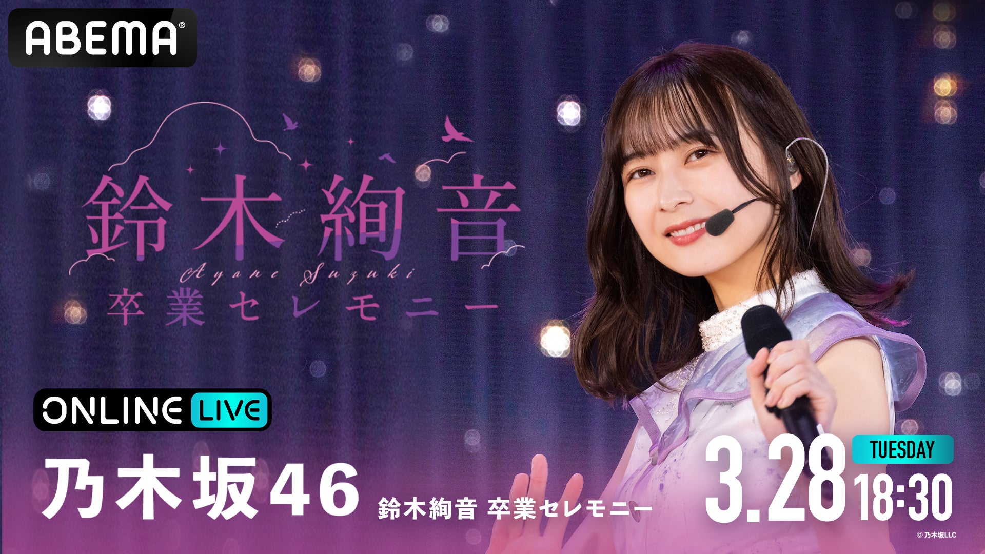 乃木坂46“最後の2期生”鈴木絢音の卒業公演『乃木坂46 鈴木絢音 卒業セレモニー』を「ABEMA PPV ONLINE LIVE」にて、2023年3月28日(火)18時30分より生配信決定