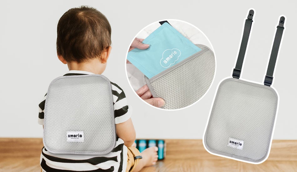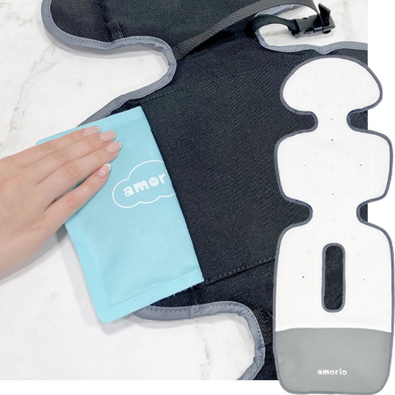 保冷剤を背中ポケットに入れて使う、赤ちゃんのためのひんやり快適シート。