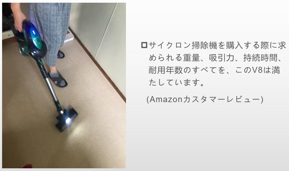V8サイクロン掃除機は、発売以来、多くの好評をいただいています。