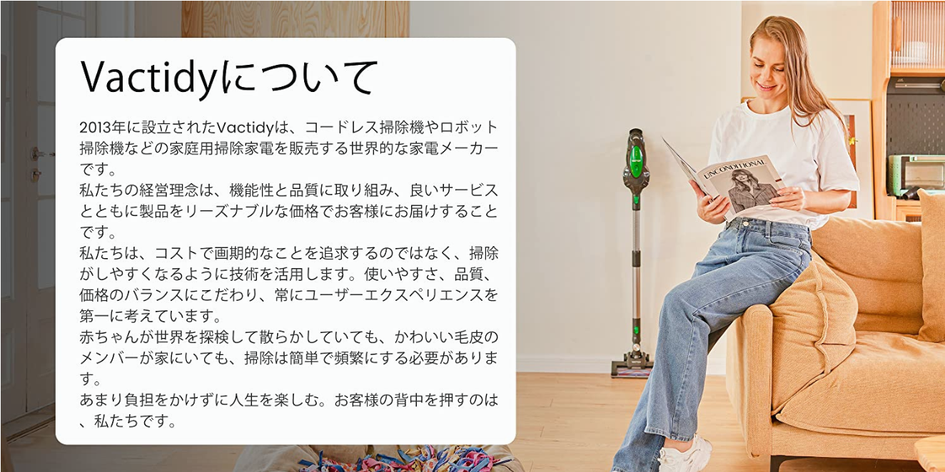 VactidyはProscenic株式会社の子会社であり、「お客様にコスパ最高のサービスを提供」をモットーに、2013年に設立された以来、スマート家電の分野で開発・販売事業に取組んで参りました。