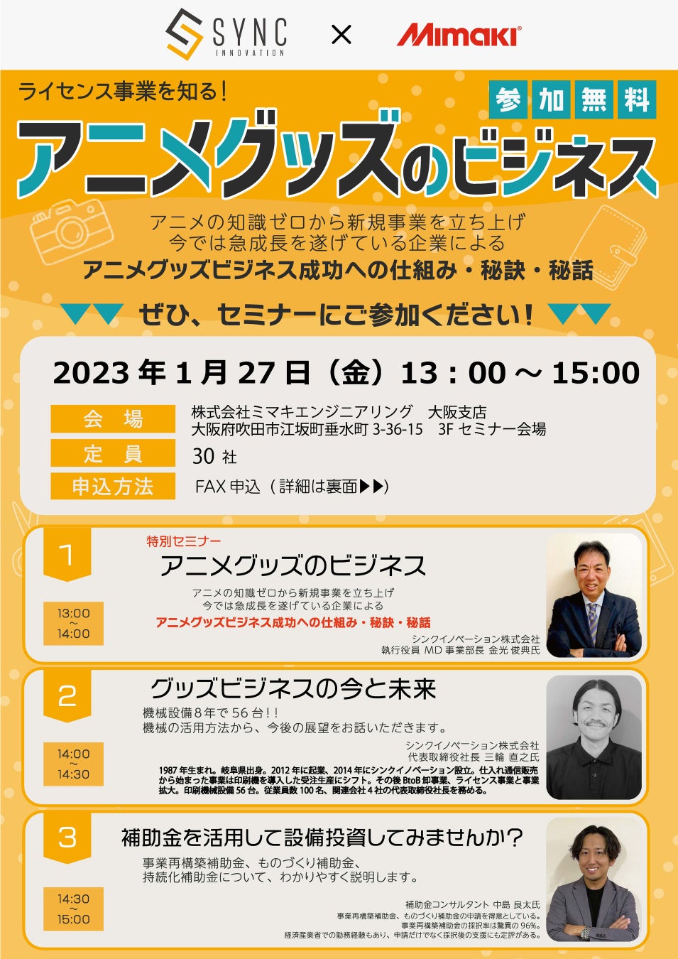 ㈱ミマキエンジニアリングの大阪支店にてシンクイノベーション㈱の無料セミナーが開催されます!