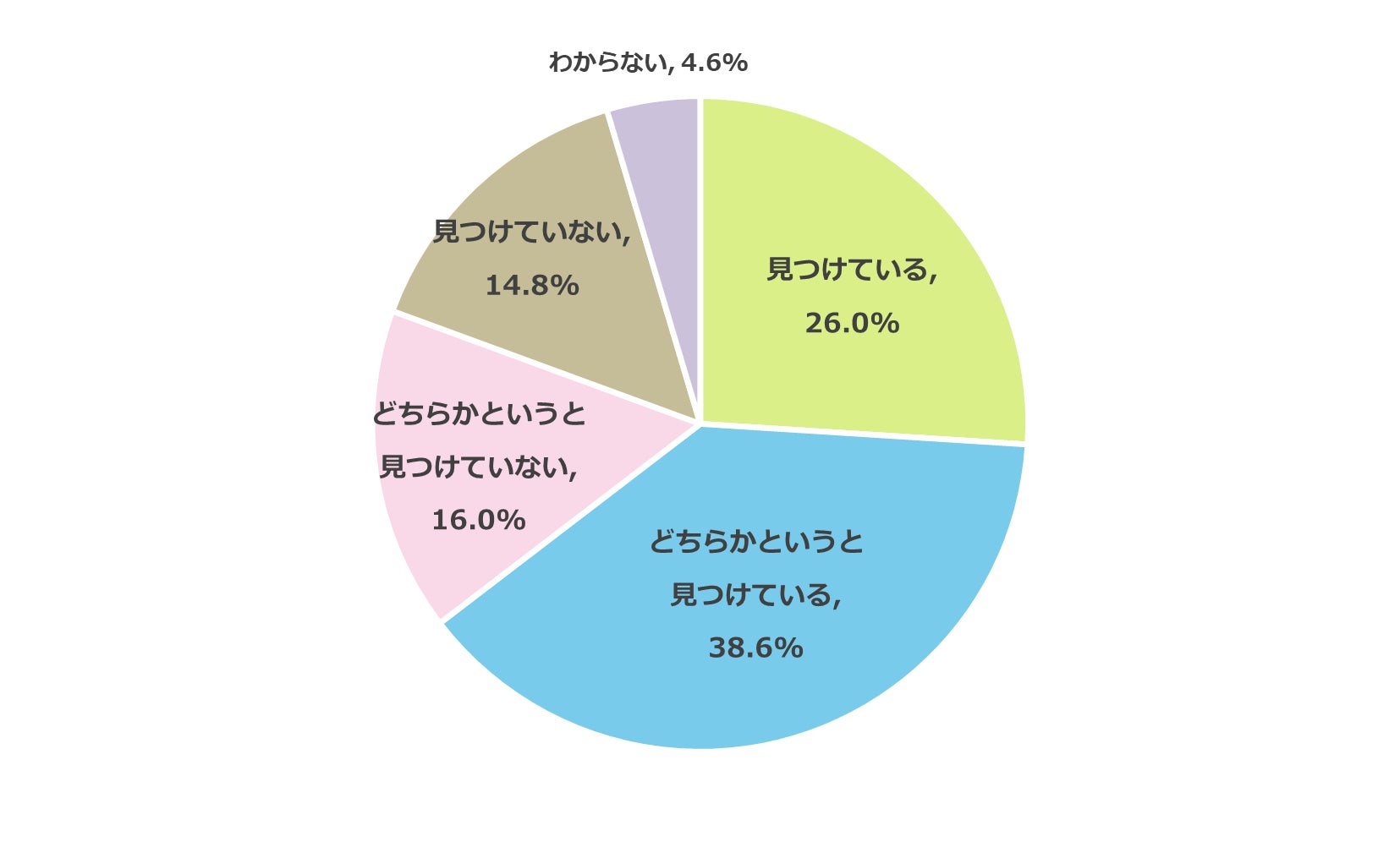 自主学習のテーマを子ども自ら見つけているか質問したところ、64.6%が「見つけている」(見つけている:26.0%、どちらかというと見つけている:38.6%)、30.8%が「見つけていない」(見つけていない:14.8%、どちらかというと見つけていない:16.0%)と回答しました。