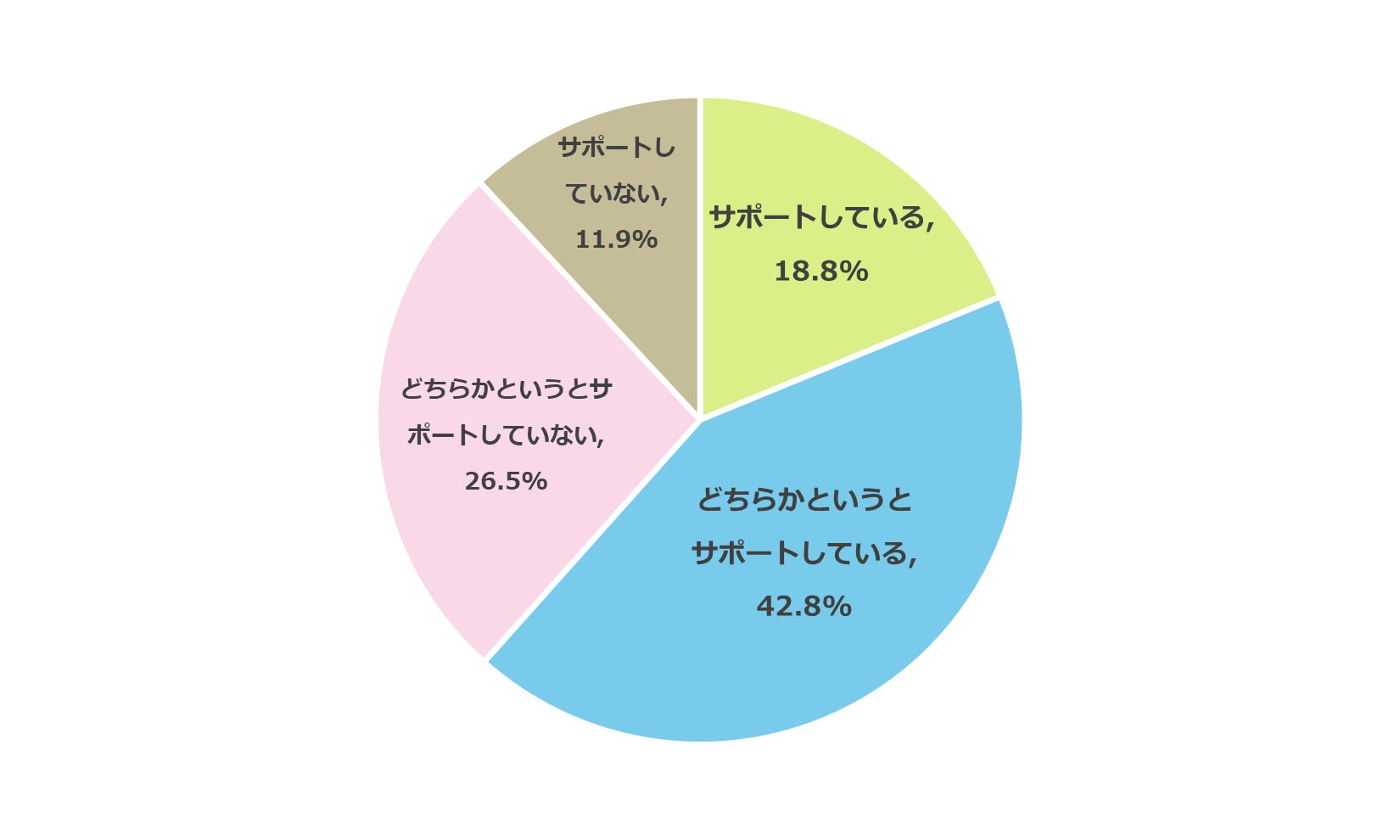 学校から自主学習が課題として出されている小学3年生~小学6年生の保護者850名を対象に、子どもの自主学習のサポートをしているか質問したところ、61.6%が「サポートしている」(サポートしている:18.8%、どちらかというとサポートしている:42.8%)と回答しました。子ども自らが内容を考えて取り組む自主学習ですが、現状は、多くの家庭で保護者のサポートが必要なことがわかりました。