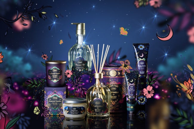 夜にしか咲かない不思議な花々を束ねた「スターライト・ブーケ」の香りで、人気のボディケアアイテムからフレグランス、ホームアイテムまで、この冬だけの特別な香りが奏でる色とりどりのアイテムが、ホリデーシーズンにきらめくような彩りを添えます。