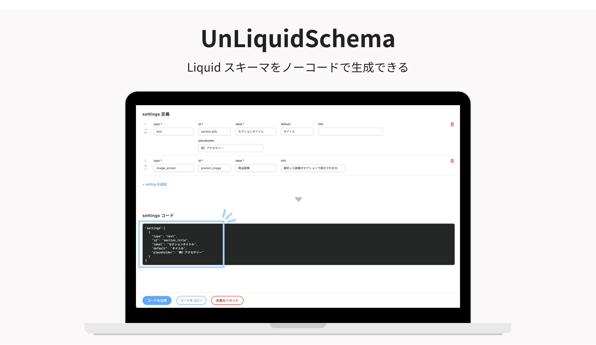 Shopify などで採用されている Liquid スキーマをノーコードで生成できるツール「UnLiquidSchema」をリリース