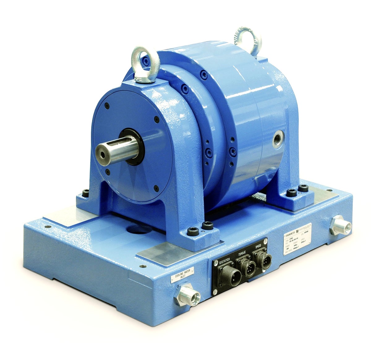今回販売するパウダーブレーキ「PB-IS」シリーズは、モーターの性能評価や耐久試験、ギアの負荷試験などにおいて、より高負荷な評価・試験を可能にします。既存のパウダーブレーキ式デジタルダイナモメーターからトルクセンサーの機能を省きブレーキ機能のみに絞ったシリーズで、定格トルクは最大で1,200 N・m(ニュートン・メートル)、吸収出力は最大で48kWまで対応します。新シリーズでは、水冷式を採用しており、空冷式が使われている既製ブレーキに比べ、吸収出力を20倍まで上げることができます(※2)。これにより、500N・mでも900rpm(revolutions per minute:1分間の回転数)以上の連続運転が可能になります。例えば、定格1,000rpm以上回転するサーボモーターの評価や、定格数100N・m、10kW以上の誘導モーターの耐久試験など、より幅広い範囲のモーターやギアの評価・試験が可能です。