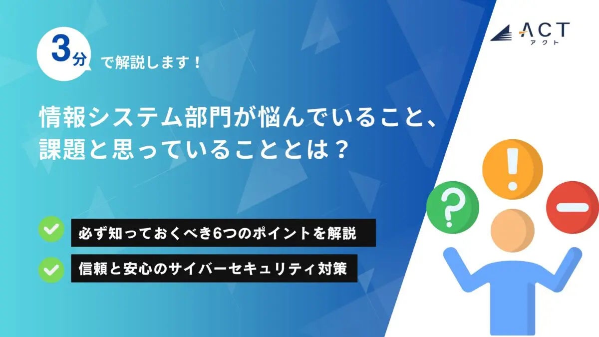 今年30周年を迎え、サイバーセキュリティ事業などを行う株式会社アクト(本社:東京都文京区、代表取締役CEO 小林 智彦 、以下 アクト)は【3分で解説!情報システム部門が悩んでいること、課題と思っていることとは?】のホワイトペーパーを公開しました。