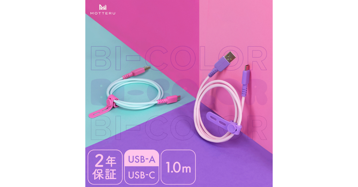 株式会社MOTTERU(モッテル)(本社:神奈川県海老名市、代表取締役:櫻田良太)は、店舗限定として、新たにバイカラーデザインのケーブルを新発売します。USB-A to Lightning / USB-C to USB-C / USB-A to USB-Cの3種から、用途に合わせてお選びください。2024年9月27日(金)から全国の家電量販店、雑貨店などの店頭で順次販売を開始します。