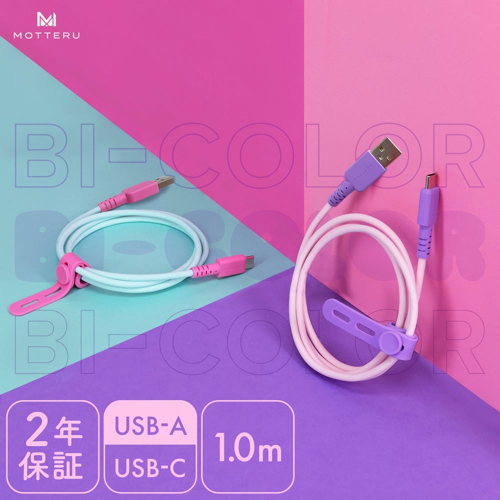 バイカラーシリコンケーブル USB-A to USB-C(MOT-BCAC100) |