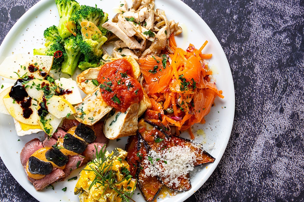 ・ブロッコリーのガーリック風味・ハーブ香るチキンとキノコのマリネ・「下川六〇酵素卵」のフリッタータ・スモークサーモンのキャロットラペ・チーズテリーヌ リンゴとバルサミコ・北海道ロースビーフ トリュフと醤油のエスプーマ・ナスのトマトマリネ ・南瓜のサラダ
