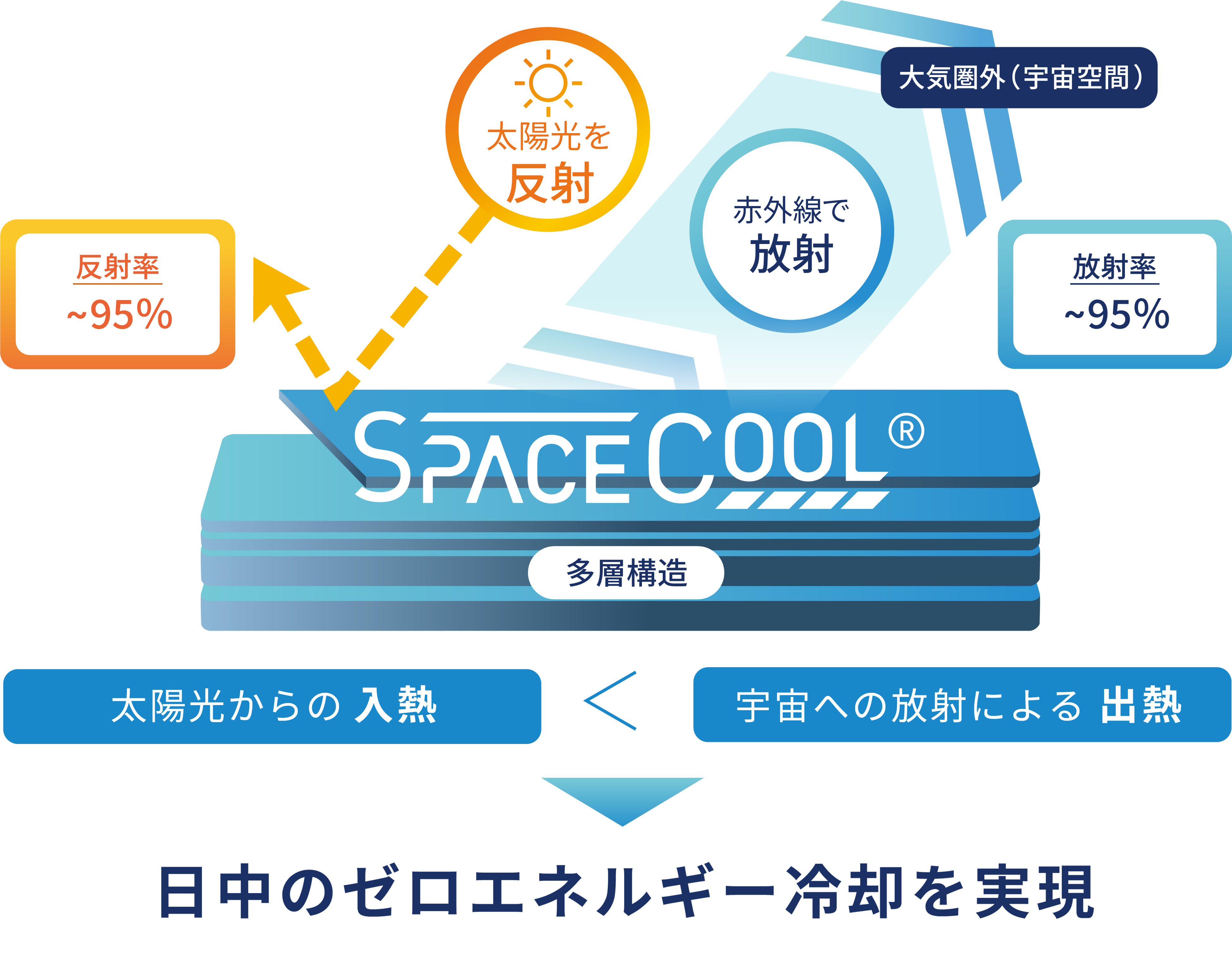 2021年4月に設立した国内発クライメートテックスタートアップ。自然界の放射冷却現象を技術化し、従来技術では実現できなかった日中のゼロエネルギー冷却を可能にする放射冷却素材、「SPACECOOL(スペースクール)」の研究開発・販売を行う。建物や屋外インフラ、人や動植物にSPACECOOLを適用することで、エネルギー負荷やCO2排出量の削減、ヒートストレス改善や生産性の向上などを実現し、地球温暖化対策のゲームチェンジャーを目指す。