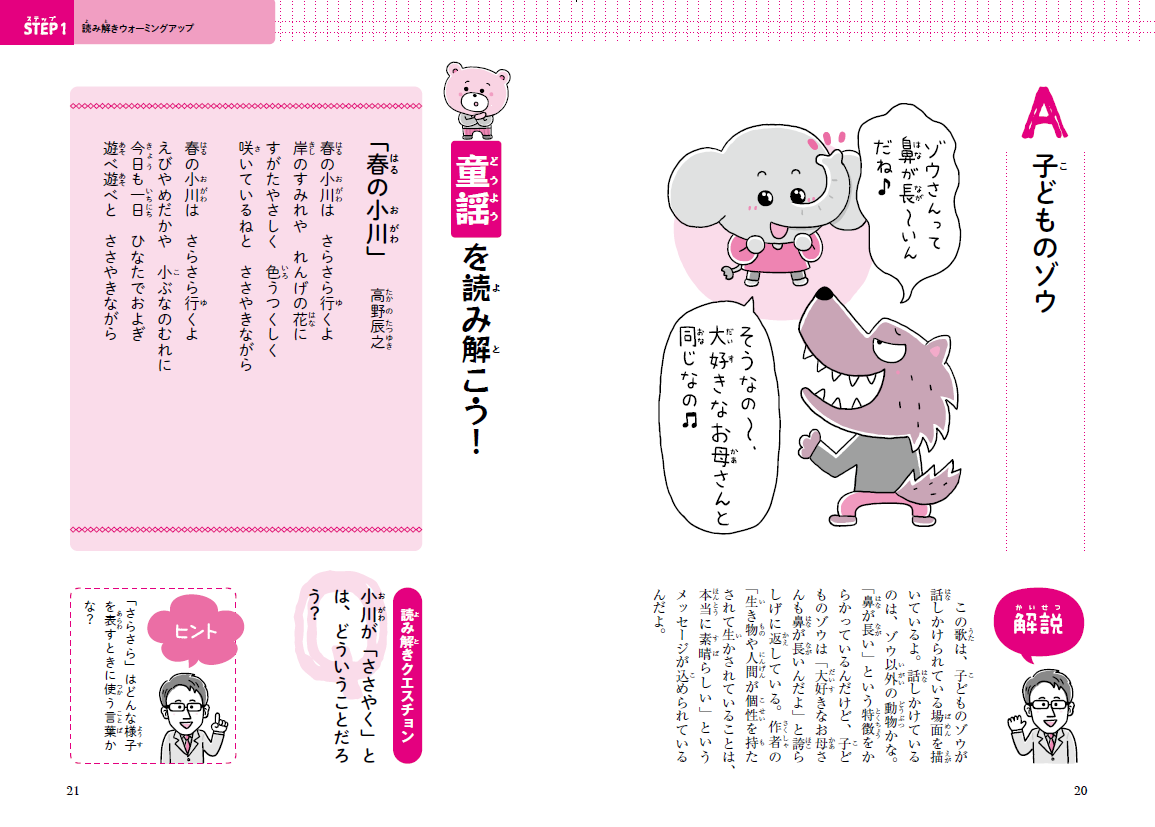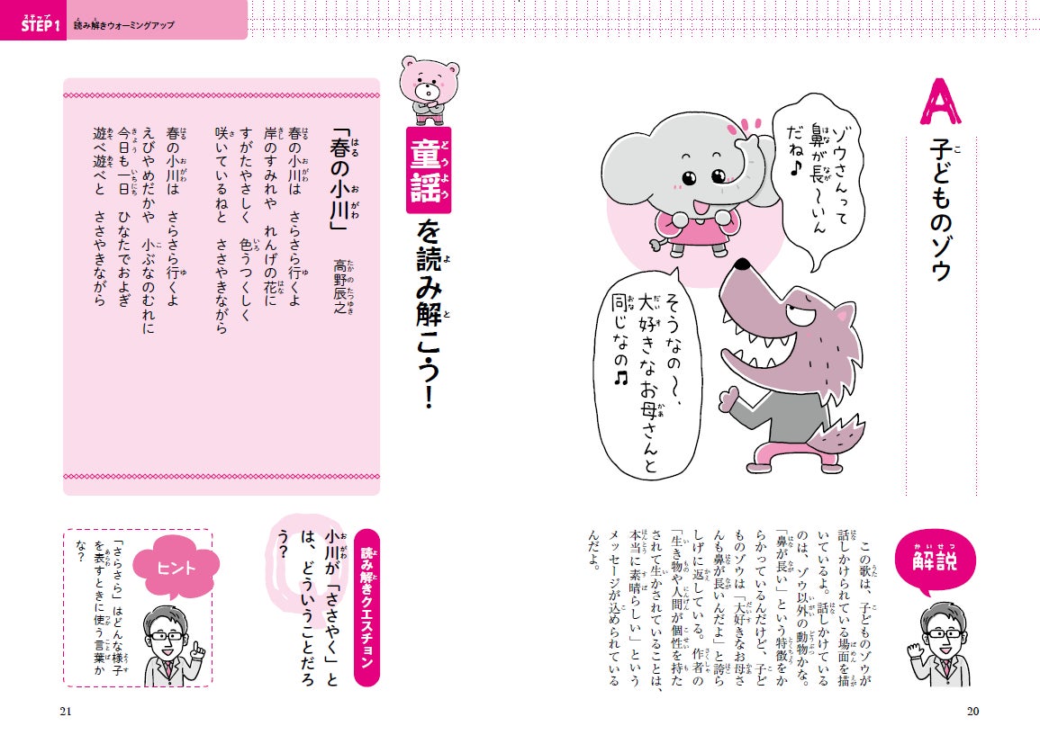 一般的に子ども向けの読解力向上のための書籍は、文学作品や小説を例にあげているものが多い中で、本書では、文学作品といった一般的な読み物だけでなく、ニュースや新聞記事、SNS、詩や絵、図(グラフ)など日常の中でよく直面するシチュエーションややりとりなどを通して、読解力を養うことができます。またイラストなどのビジュアルが盛り込まれており、短い時間で読み切ることができる本書は、読書があまり得意ではない子どもにとっても読みやすい内容になっています。