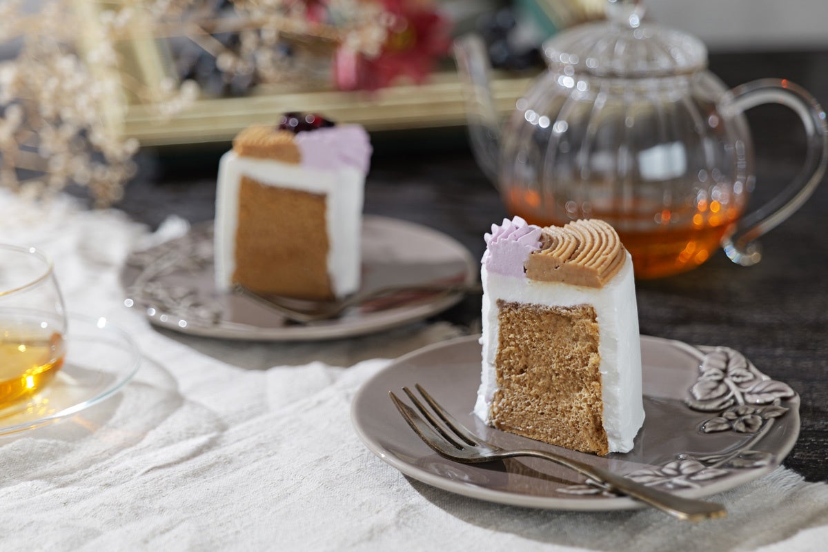 さらに、秋の香りを詰め込んだのシフォンケーキセット『Autumn CHIFFON Box』< オータム・シフォン・ボックス >が登場いたします。現在販売中の紅茶のシフォンケーキ『MOMIJI』と、本商品の『カシスモンブラン』を同梱しお届けいたします。こちらもオンラインストアにて、9月24日(火)より販売開始となります。