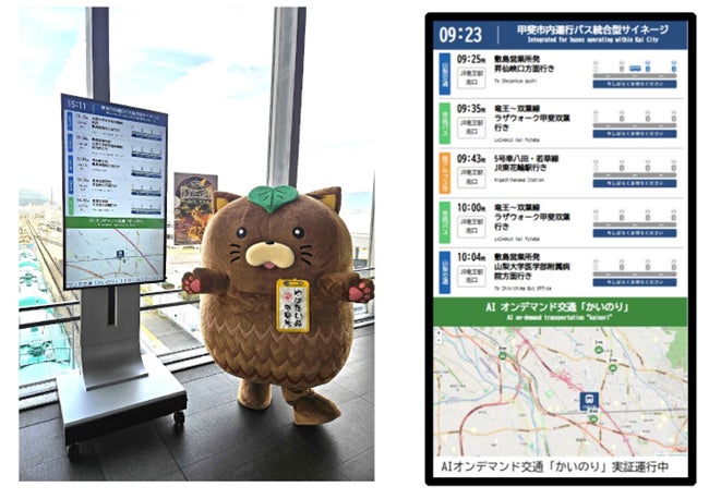 株式会社ユニリタ(東証スタンダード市場:3800、以下 ユニリタ)のグループ会社で、持続可能な地域社会実現と公共交通最適化の視点から社会課題をデジタル技術で解決する株式会社ユニ・トランド(本社:東京都港区、代表取締役社長 高野 元、以下 ユニ・トランド)は、甲斐市地域公共交通会議(会長 瀬戸 隆之 、以下 甲斐市)が実証実験を行うAIオンデマンド交通「かいのり」において、ユニ・トランドが開発したバスロケーション(以下 バスロケ)ならびにデジタルサイネージのシステムが採用され運用が開始されました。