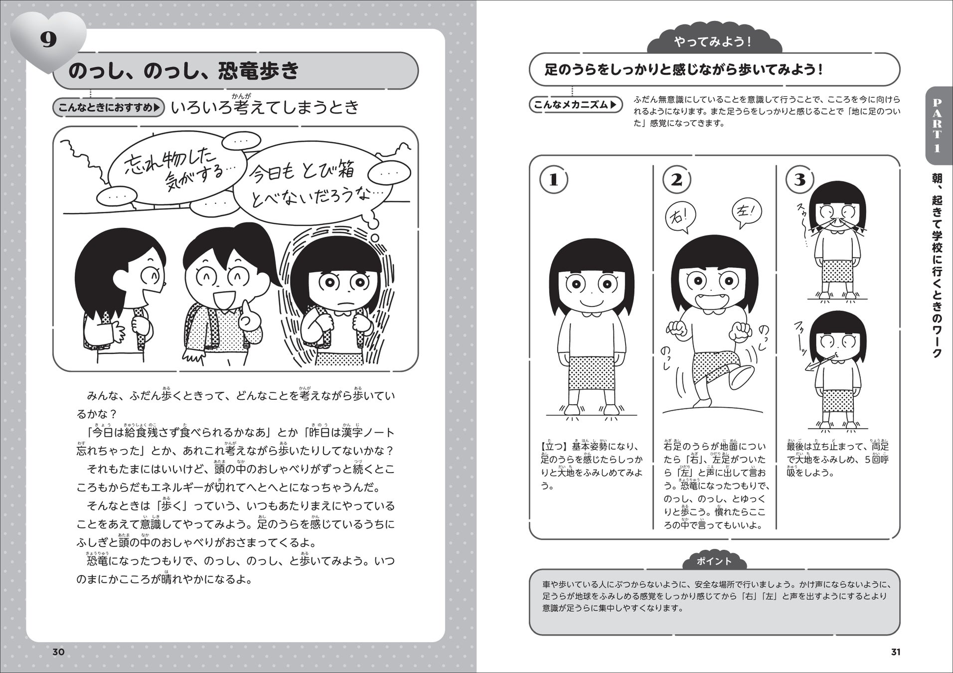 恐竜気分でのしのし歩いたり、自分の心と電話したり……朝起きてから寝るまでにできる楽しいマインドフルネス・ワークが盛りだくさん!