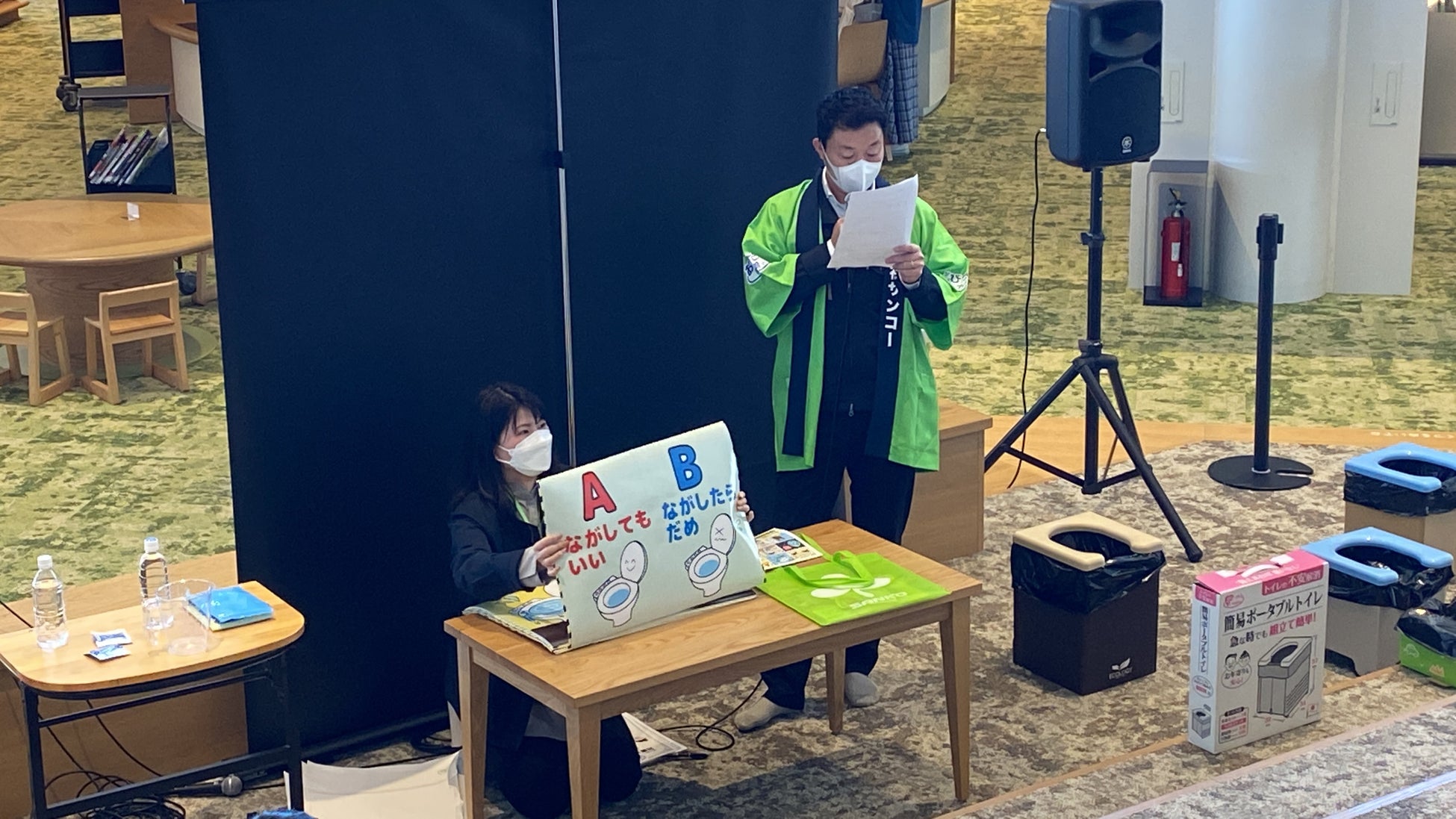 『しえきのいま』~はたらくクルマ 2022 春~ イベント内にて防災士の資格を持つ、サンコー社員によるお子さま向けの「災害時のトイレクイズ!」を行いました