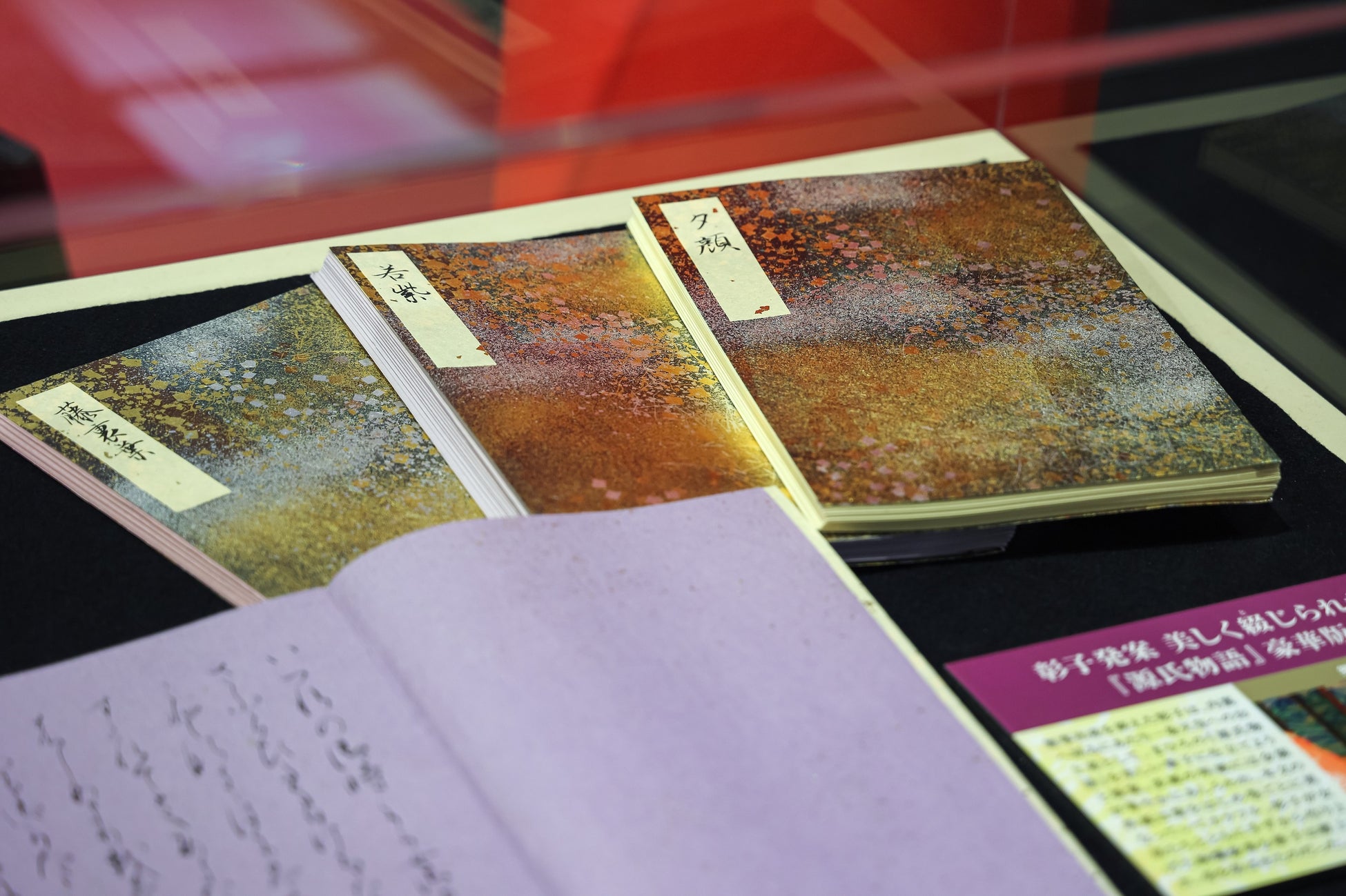 まひろ(紫式部)や彰子の手で美しく綴じられた“豪華版”『源氏物語』。巻ごとに異なる色の料紙や中に書かれた繊細な文字など、隅々までじっくりお楽しみいただけます。『源氏物語』執筆中の原稿も引き続き展示しているため、あわせてご覧ください。